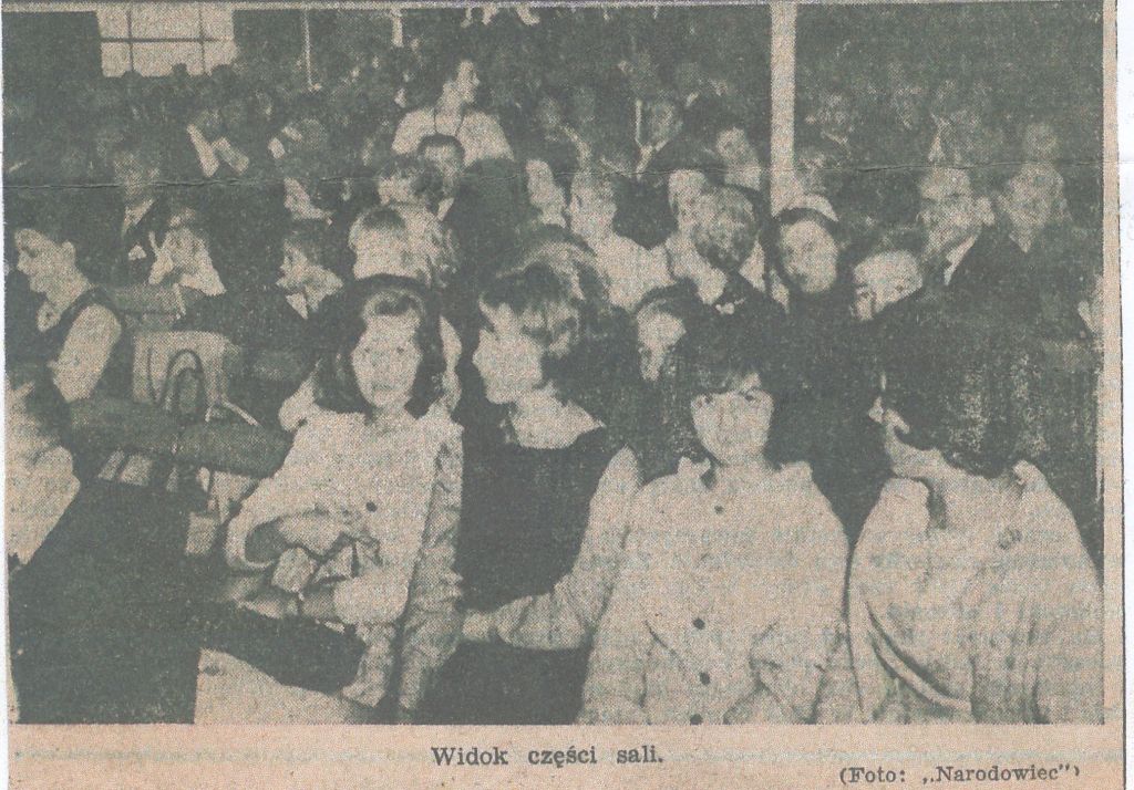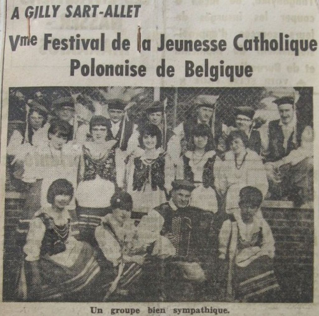 L’immense salle de la paroisse de Gilly Sart Allet était remplie à ras bord lorsqu’à 14h30, le père Adamski et Janek Dałgan, président du KSMP de Châtelineau, sont apparus sur le podium pour saluer, en polonais et en français, les personnes réunies au nom des organisateurs. Ils ont adressé leurs chaleureuses paroles de bienvenue au recteur de la mission catholique polonaise, le père H. Repka, au délégué de l’épiscopat belge pour les étrangers, Monseigneur E. Dejardin, au représentant du ministre Brasseur, à M. Marc, au curé belge local, le père Peters, ainsi qu’aux différents prêtres polonais de Belgique : Ks Szymurski, assistant général des KSMP de Belgique, Ks Müller, Ks Kurzawa, Ks Noskiewicz, Mr P. Gałązka, de l’Union des chrétiens. Ils ont également adressé un chaleureux accueil à la délégation venue de France en la personne du directeur général des KSMP de France, le père doyen Ks Lewicki, du vice-président des KSMP de France et délégué aux affaires internationales, Mr M. Kwiatkowski jr., de la secrétaire générale des KSMP, Mlle L. Klaczyńska de Noeux-les-Mines, du trésorier général des KSMP et responsable de la II région ( Douai ) Mr. Piechowiak, ainsi que M. E. Madejów. Cette délégation française a reçu du public de chaleureux applaudissements. L’accueil s’est poursuivi par l’énumération d’autres personnalités présentes : le représentant du « Narodowiec » en Belgique, Mr. Rzemieniewski, ainsi que les représentants de toutes les organisations polonaises, parmi lesquels se trouvaient également Mr. M. Gruszczynski, président du Conseil général de l’Association des hommes catholiques en Belgique, M. Wł. Kosiorek, vice-président du Conseil général de l’Association des Polonais en Belgique, M. K. Wójcik, vice-président du Conseil général du SPK Belgique, et, bien sûr, les président et présidente du comité général des KSMP Mr. E. Budzyński et Mlle L. Białecka etc.