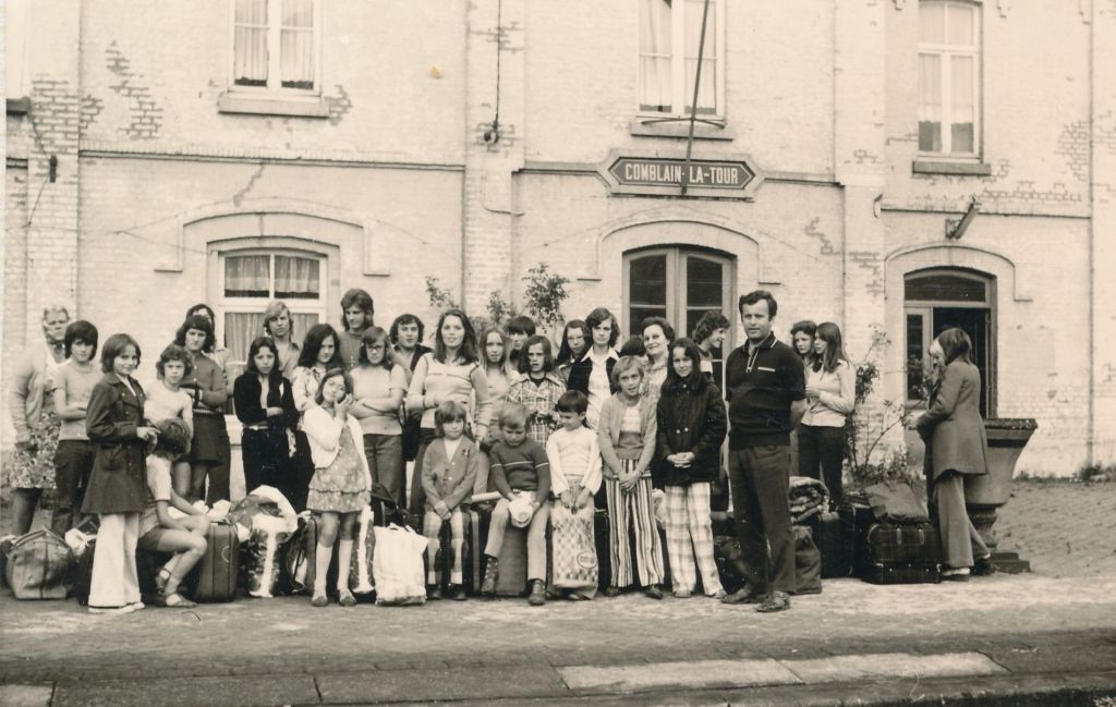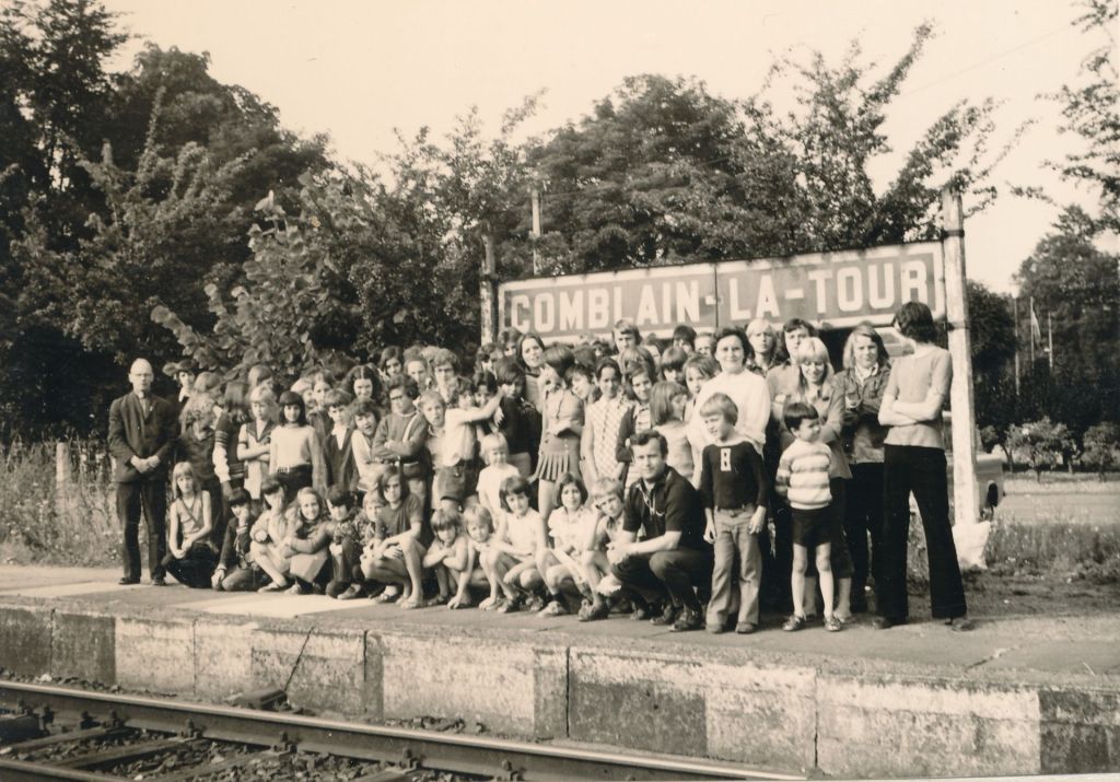 2.647 : COMBLAIN-LA-TOUR : Sur le quai de la gare : ( ? ) ; Ks Kurzawa ; … ; Marek Bujanowski ; Alexis Łagocki ; Freddy Fuitowski ; … ; Géniu Bujanowski ; … ; Pani Bardo ; ( ? ) ; accroupis au premier rang : ( ? ) ; … ; Béatrice Laffut ; Annie Korek ; … 2.648 : COMBLAIN-LA-TOUR : Sur le quai de la gare : Ks Kurzawa ; … ; Marek Bujanowski ; Alexis Łagocki ; Freddy Fuitowski ; ( ? ) ; … ; Pani Bardo ; Géniu Bujanowski ; ( ? ) ; accroupis au premier rang : ( ? ) ; … ; Béatrice Laffut ; Annie Korek ; … 2.649 : COMBLAIN-LA-TOUR : Devant la porte principale : ( ? ) ; … ; ( ? ) ; … ; Zdzisław Blaszka ; …