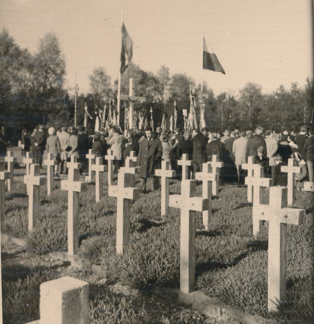 Pour évoquer ce cimetière et les célébrations qui y sont attachées, je vous propose de redécouvrir le petit texte que le Docteur Edward Pomorski avait écrit en 1956 – à l’attention des élèves que nous étions – dans son livre « Nasza rodzina ». Comme à son habitude, Dr. Pomorski utilise ici une petite histoire familiale pour faire plonger ses petits lecteurs dans la réalité. Ce petit texte est plein de délicatesse, de poésie et de sobriété. On peut se rendre compte ainsi du nombre de gens présents ( 3 trains spéciaux, 40 bus, une multitude d’autos, … ), de l’enthousiasme et du recueillement qui régnait alors à Lommel.