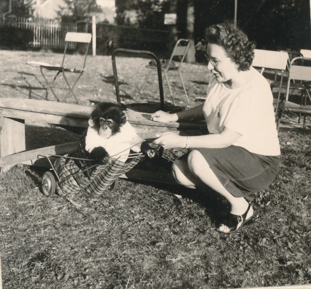2.758 : COMBLAIN-LA-TOUR : Le petit singe semble dire : « On m’avait pourtant dit qu’il y avait un arbre aux singes ici ? ».