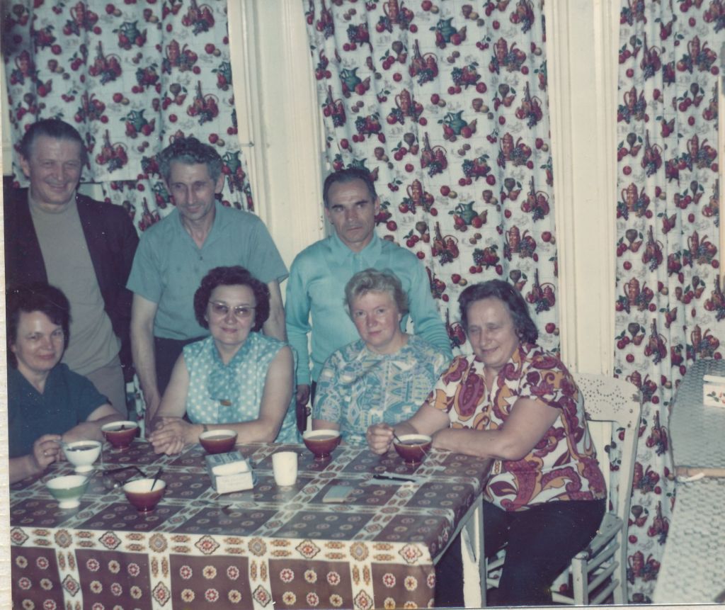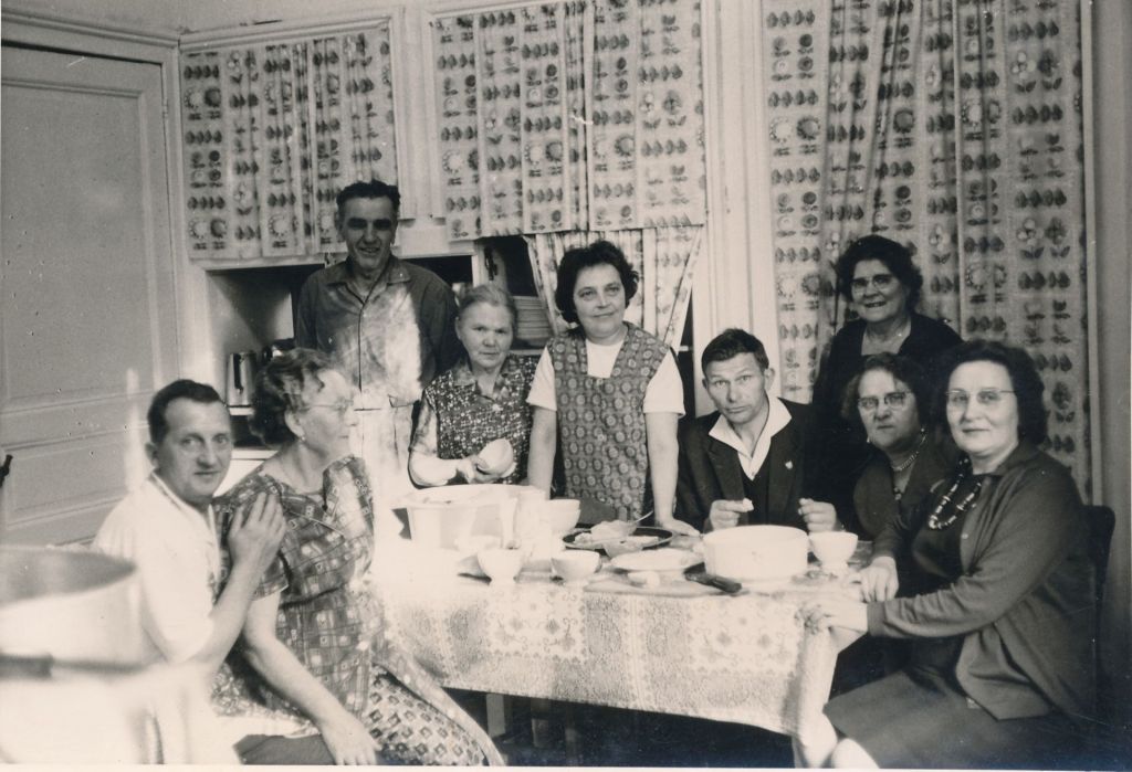 Dans la cuisine : ( ? ) ; Mr Leon Warchulski ; Mr Szczepanski ; Mr Jóżef Stepień ; Mr Franek Front ; Pani Bardo ; ( ? ) ; Mr Franek Bujanowski ; ( ? ) ; Pan Jan ; Mme Bujanowski.