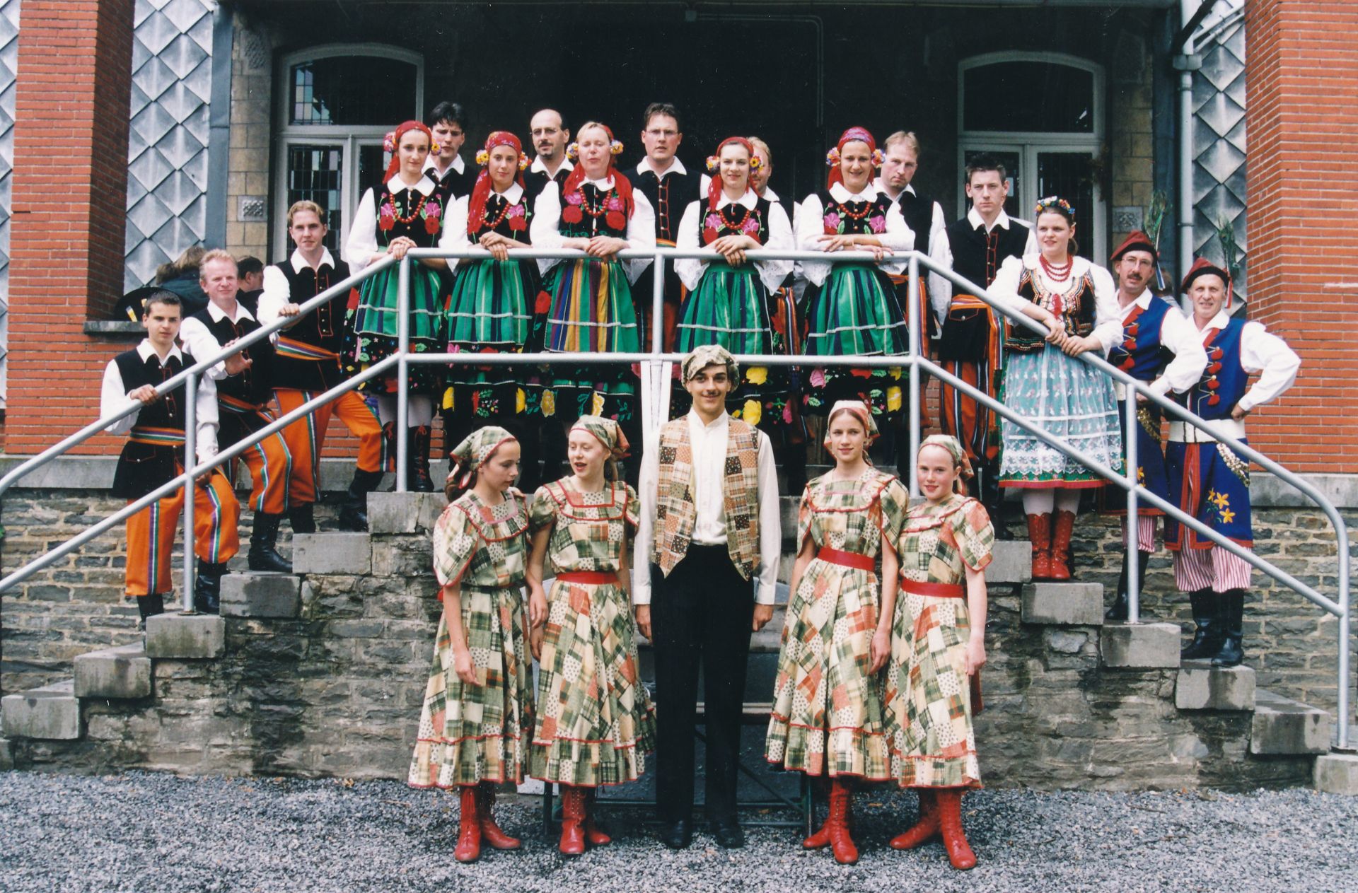 Tous apprécient cette jeunesse. Car, ce qui est apprécié ici, demande beaucoup d’efforts, des répétitions et des réunions fréquentes. L’ensemble compte environ 40 membres, filles et garçons. Ils travaillent déjà professionnellement ou vont encore à l’école. Le responsable, K. Czerwiec, travaille à Anvers, loin de Winterslag. Et malgré cela, il est présent à toutes les réunions et toutes les répétitions, où il danse aussi. L’ensemble possède de très beaux costumes. Ils ont été cousus par les filles du groupe sous la direction artistique de Helcia Staszak. N’oublions pas l’excellent orchestre du groupe composé de : Kieroński Stasiu, Szymczak Jerzy, Naguj Janek.