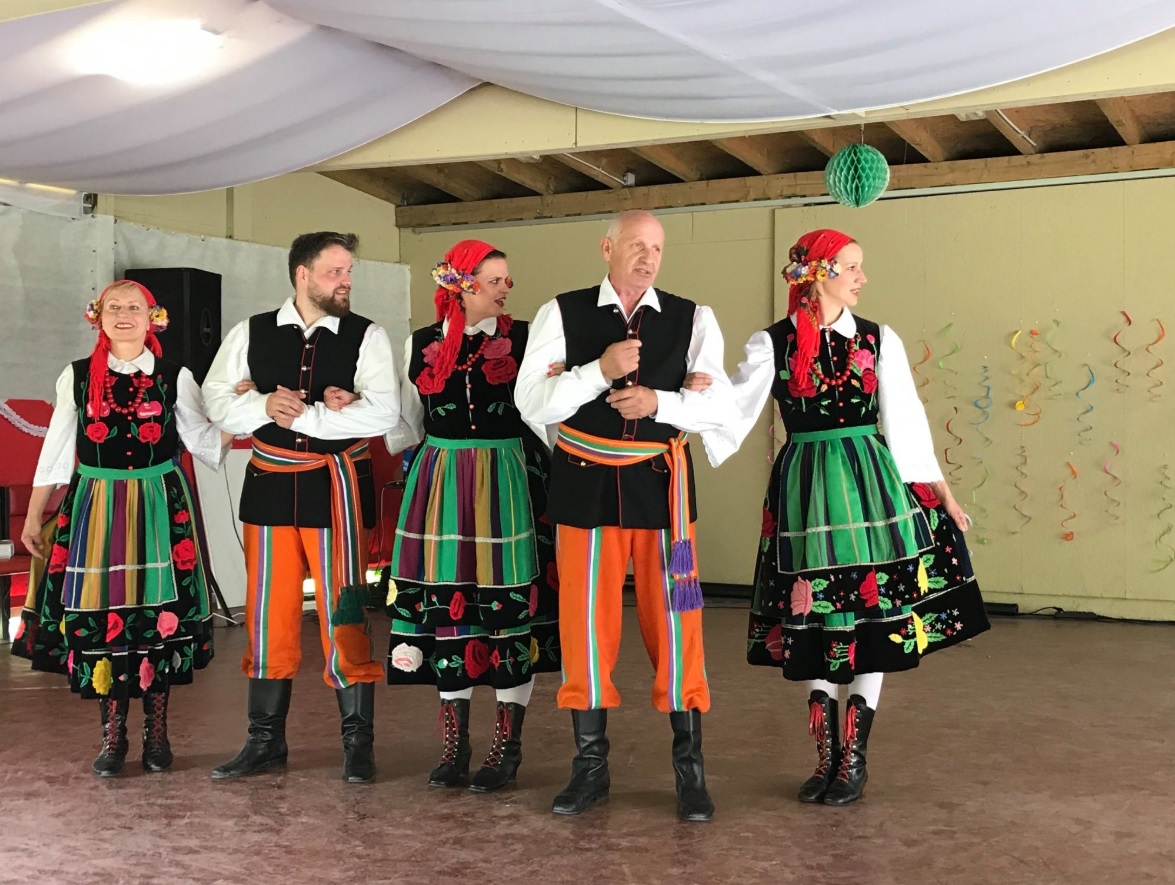 Vers 14 heures, l’orchestre de Franek Klimanowicz commence à jouer. Les gens prêts à danser ne manquent pas. Plus tard, vers 15 heures, la jeunesse de « Wisła » de Winterslag se présente sur scène. Auparavant, Mr J. Rzemieniewski a pris la parole, au nom du comité de la Macierz, pour souhaiter la bienvenue aux participants et les remercier d’être venus, et pour remercier le Père Recteur H. Repka d’avoir célébré la Messe et prononcé le sermon, et le Père K. Szymurski d’avoir embelli la partie religieuse de l’événement. Parmi les participants, il y a également quelques invités, venus de Pologne, qui passent leurs vacances avec leurs familles en Belgique. Quelques mots de bienvenue leur sont adressés. Les amis belges présents ne sont pas oubliés non plus.