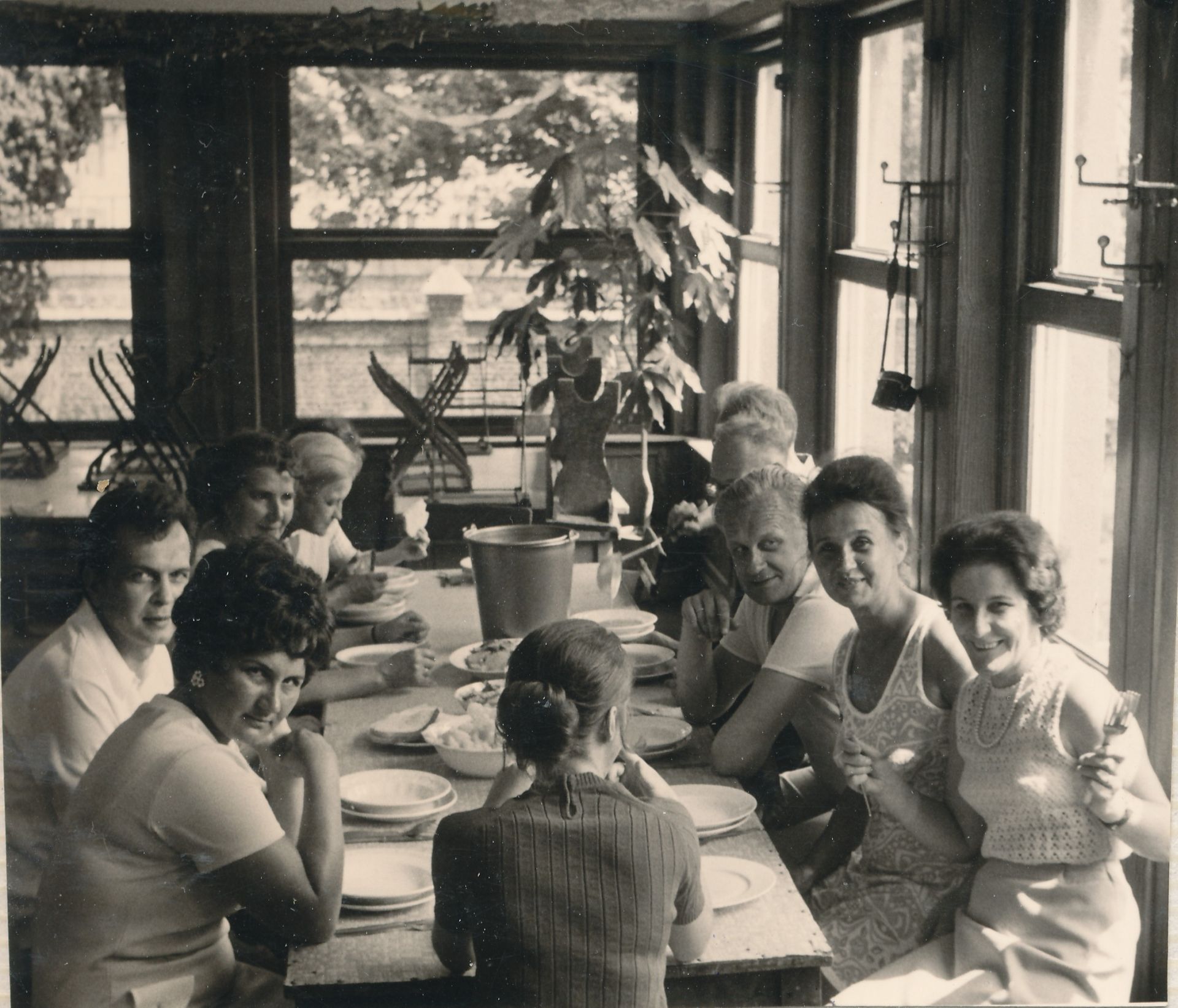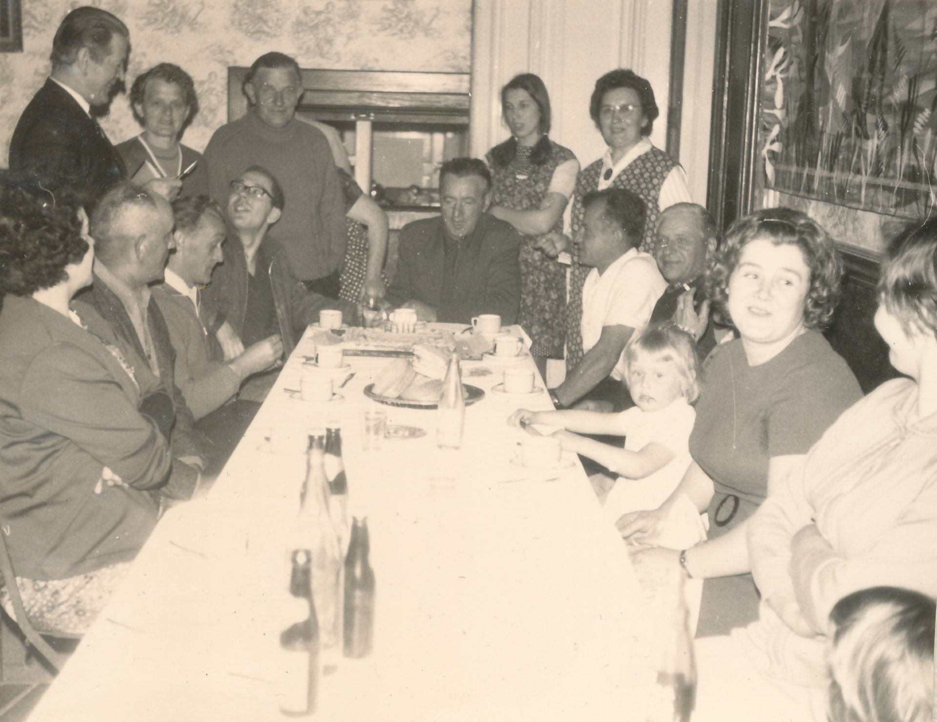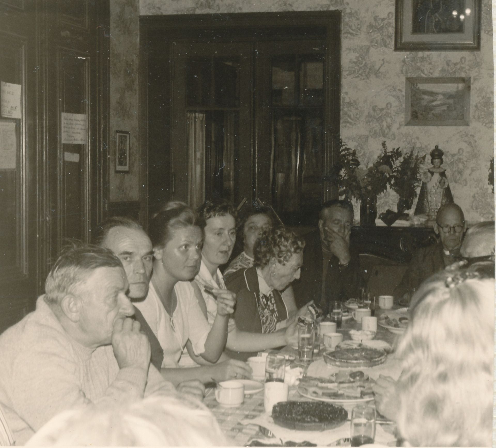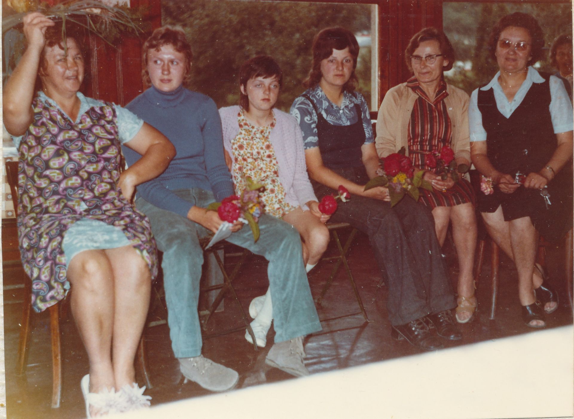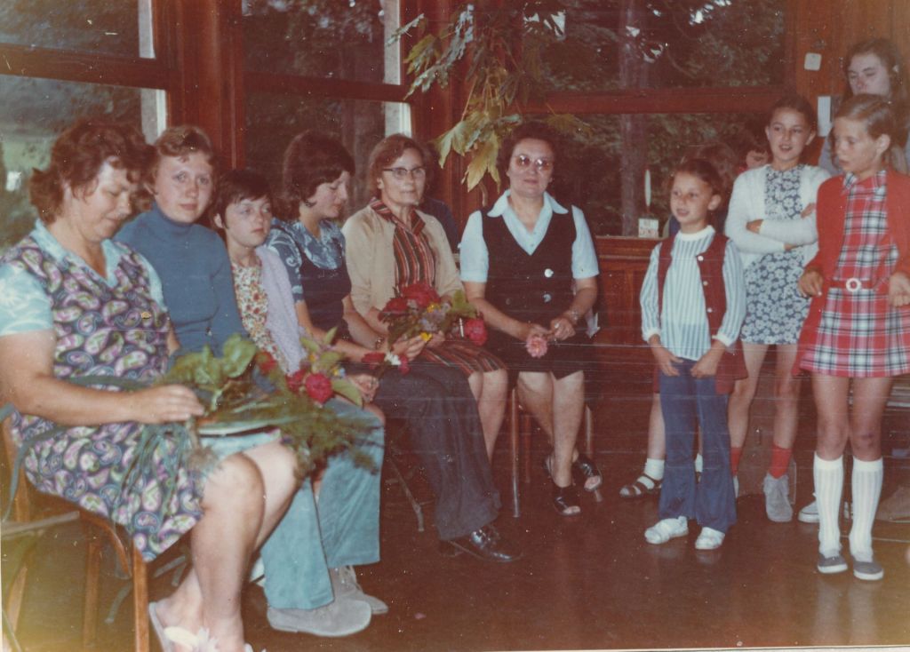 À Comblain-la-Tour – notre petite Pologne à nous – nous ne manquions jamais de célébrer les imieniny des participants. Les deux premières photos d’aujourd’hui en sont l’illustration. Ces clichés ont donc été pris un 26 juillet ! Ce jour-là, on célébrait toutes les « Anna » … et par extension les « Annie », … On retrouve donc, mises à l’honneur : Anna Konska ( Mme Dudziak ) ; Annie Borowska ; ( ? ) ; Anna Dudziak ; ( ? ) ; Anna Platek ( Mme Bardo ). Et chacune d’entre elle avait reçu une fleur.