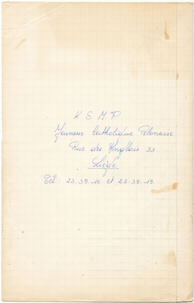 Des vents favorables m’ont confié quelques-unes des archives du « skarbnik » du KSMP de Liège ; archives qui datent entre 1966 à 1973. C’est là que j’ai relevé les villages qui sont cités plus haut. Ces documents reprennent scrupuleusement des listes de membres, leurs adresses précises, dates et lieux de naissance, ainsi que les cotisations de chaque membre. Je peux vous dire qu’on ne rigolait pas en ce temps-là !
