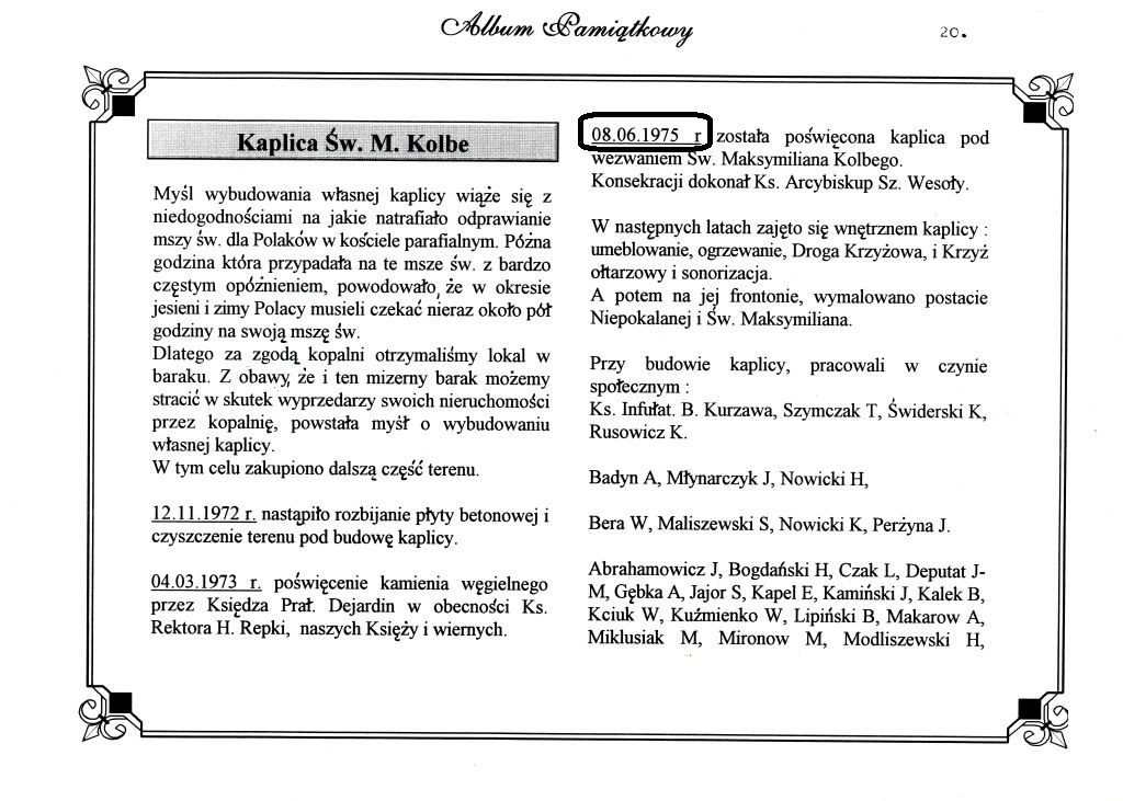 En effet, le 8 juin 1975 – c’est-à-dire il y a 46 ans jour pour jour – nous inaugurions la nouvelle église polonaise de Ressaix en présence de nombreuses personnalités et des KSMP de Ressaix, de Mons et de Liège.