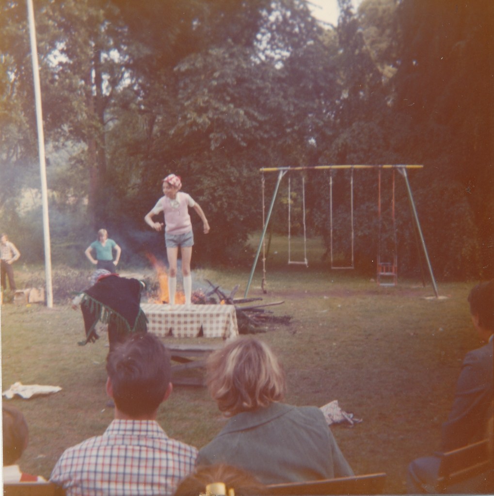Comme celui de la première photo ( 3.233 ) où on peut voir côte à côte Annie Nowicki et Zosia Król. Je suppose que l’une était monitrice et l’autre sous-monitrice ? Qui pourrait confirmer ? Je crois reconnaître sur la même photo Béatrice Laffut. Si vous pouviez nous aider à identifier les autres ce serait extra. Remarquez à l’arrière … l’ognisko est flamboyant ! Pas de doute … c’est sûrement un « pro » qui s’en est occupé.