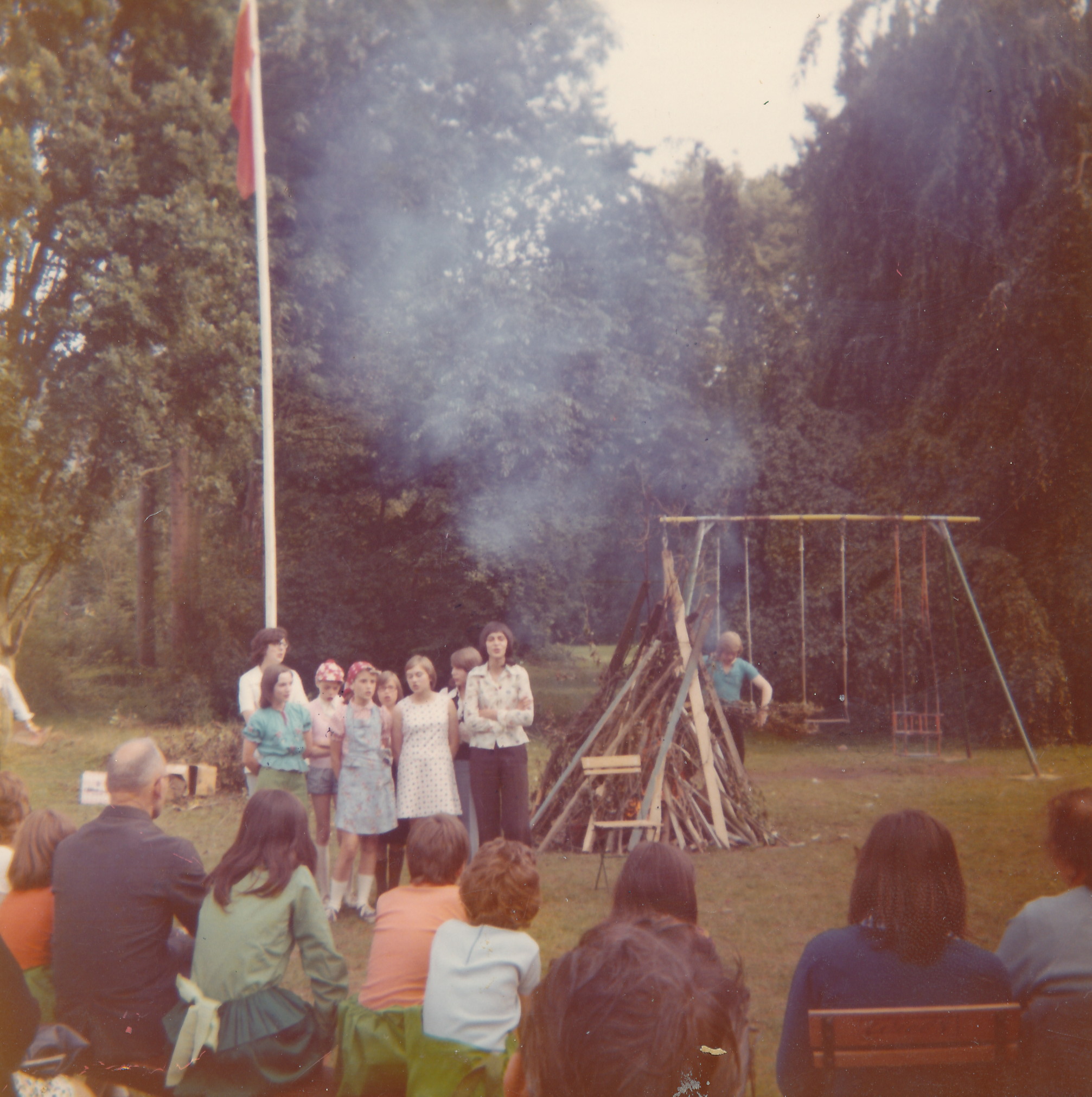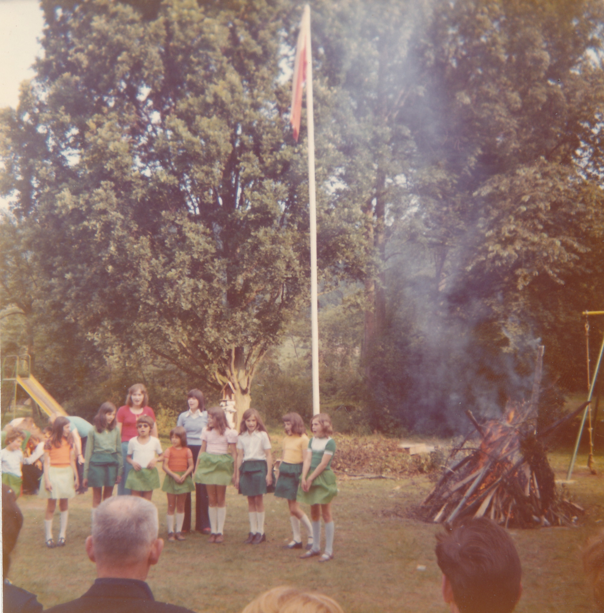 Comme celui de la première photo ( 3.233 ) où on peut voir côte à côte Annie Nowicki et Zosia Król. Je suppose que l’une était monitrice et l’autre sous-monitrice ? Qui pourrait confirmer ? Je crois reconnaître sur la même photo Béatrice Laffut. Si vous pouviez nous aider à identifier les autres ce serait extra. Remarquez à l’arrière … l’ognisko est flamboyant ! Pas de doute … c’est sûrement un « pro » qui s’en est occupé.