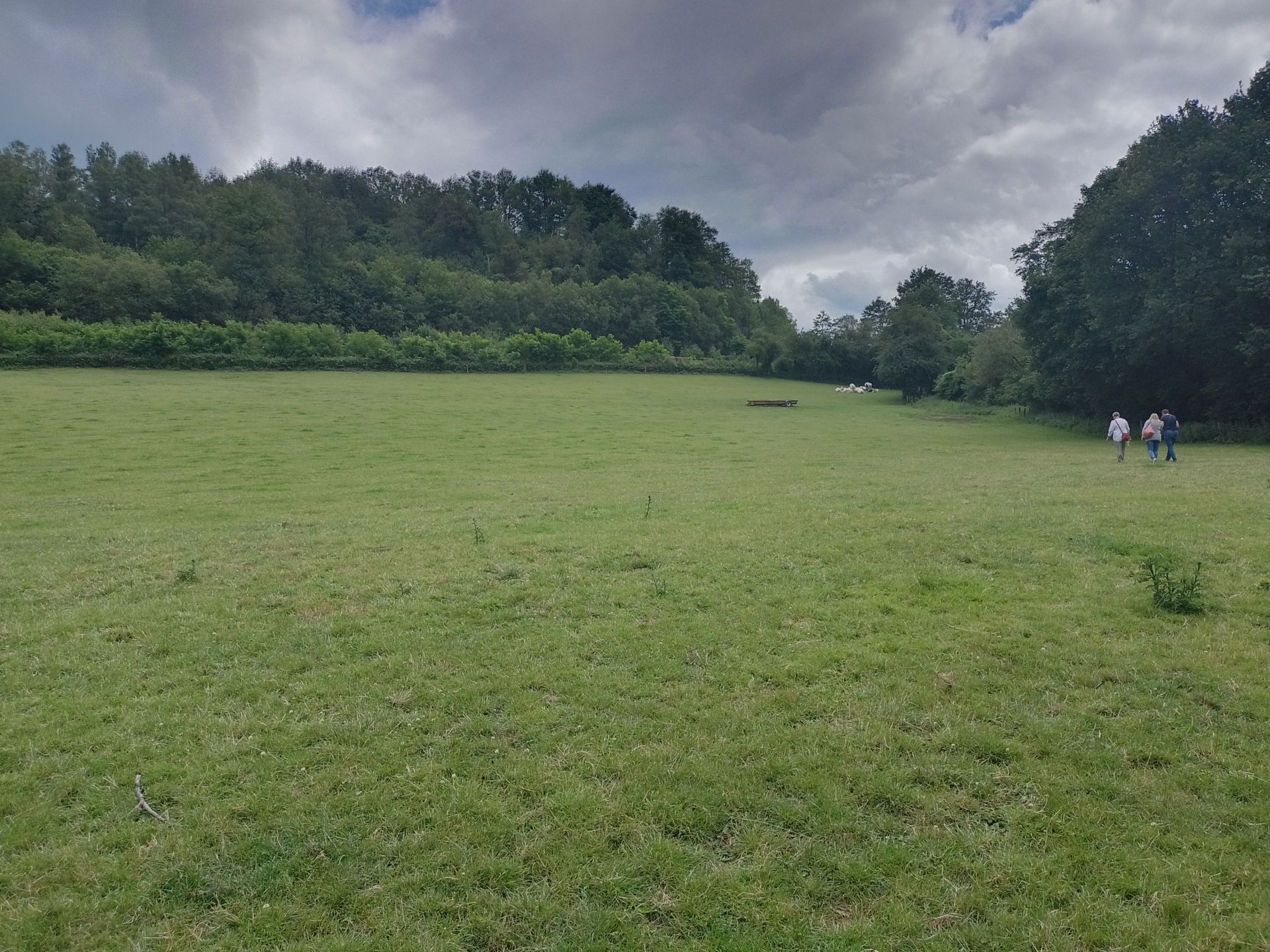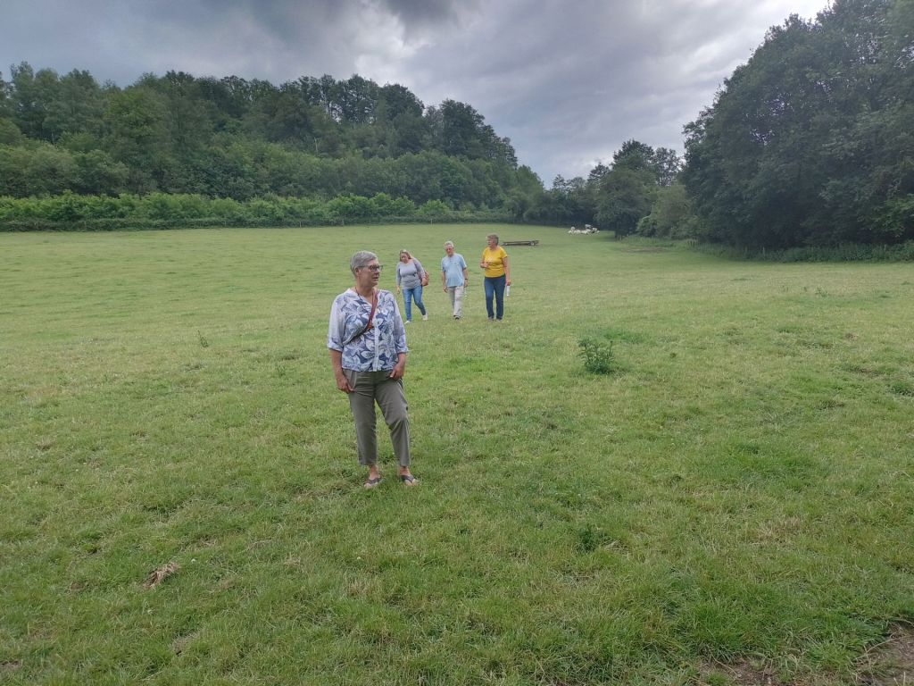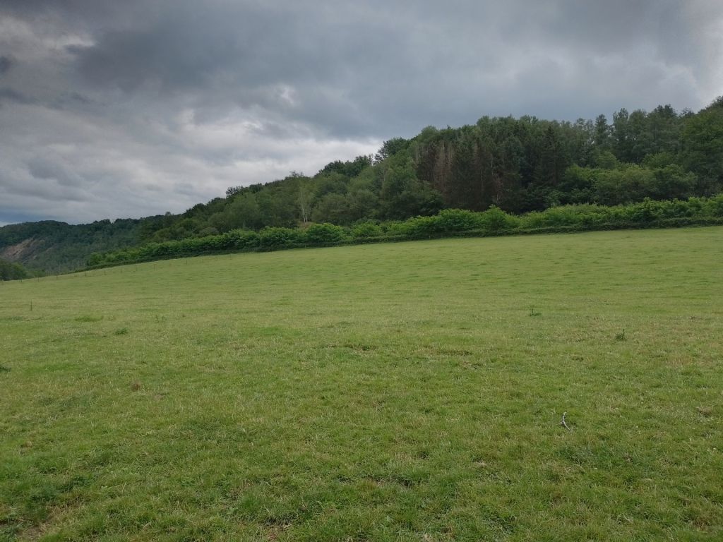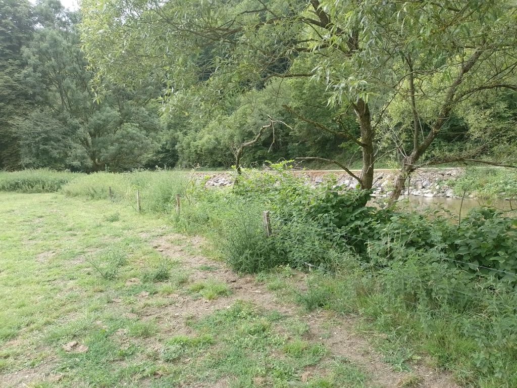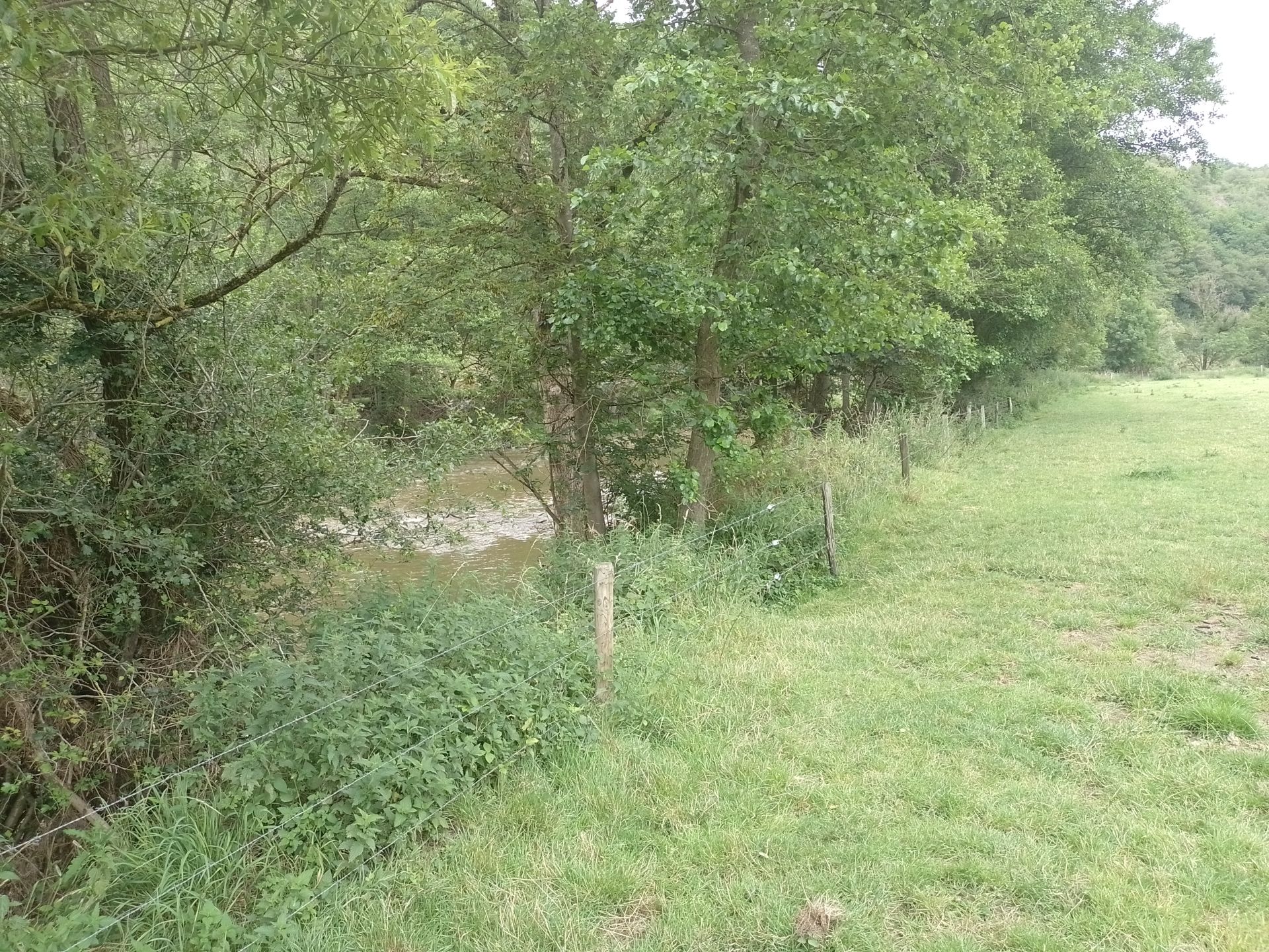 Mais … première surprise … il a fallu franchir une clôture ! Eh oui, si l’endroit est toujours aussi beau, il est à présent clôturé. Seules quelques vaches y ont accès. Elles ont été surprises de nous voir arriver … surprises mais relativement indifférentes. Même le taureau n’a pas fait preuve de curiosité. Il est resté parmi ses congénères à brouter nonchalamment. Ça nous a permis d’approcher de l’Ourthe.