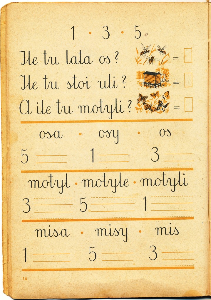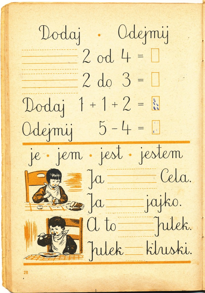 C’est ensuite l’apprentissage du calcul « dodaj » « odejmij », toujours avec une écriture parfaite et des grandes lettres bien formées pour donner aux enfants l’envie d’apprendre.