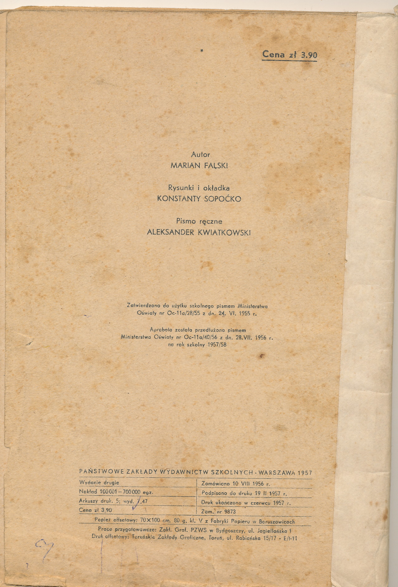 Ce cahier est du même auteur que celui qui a écrit Elementarz, c’est-à-dire Marian Falski, mais l’illustrateur est différent, il s’agit ici de Konstanty Sopoćko.