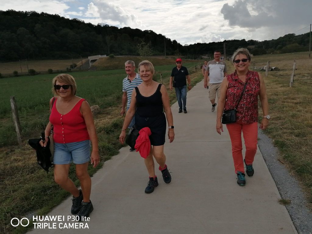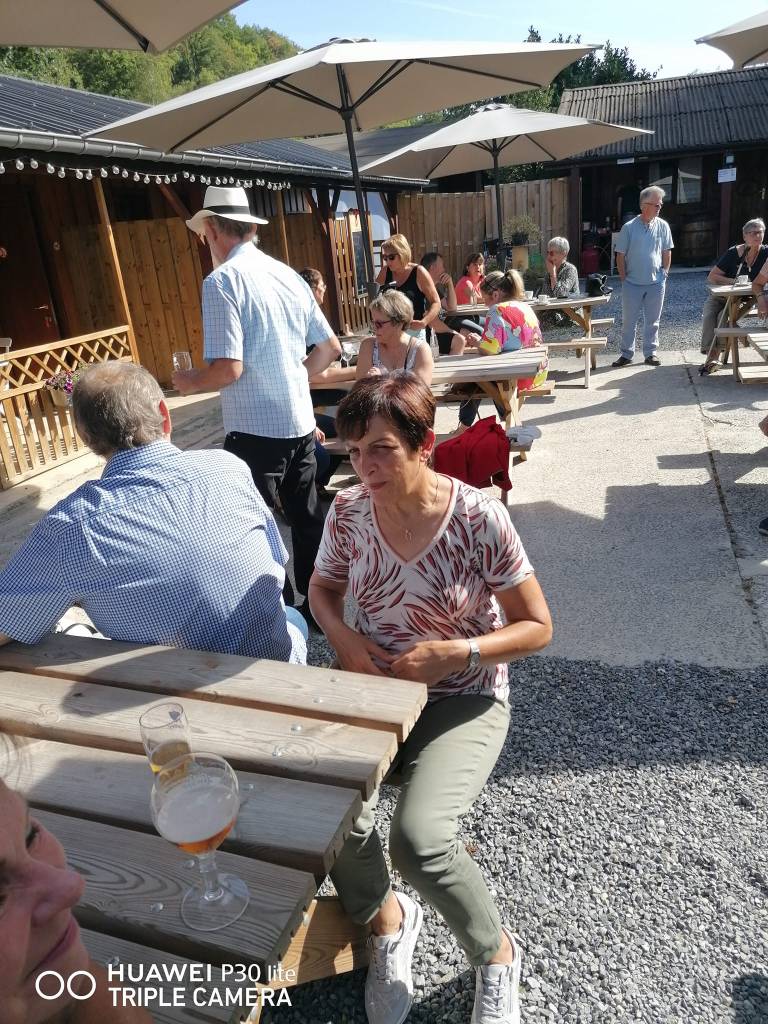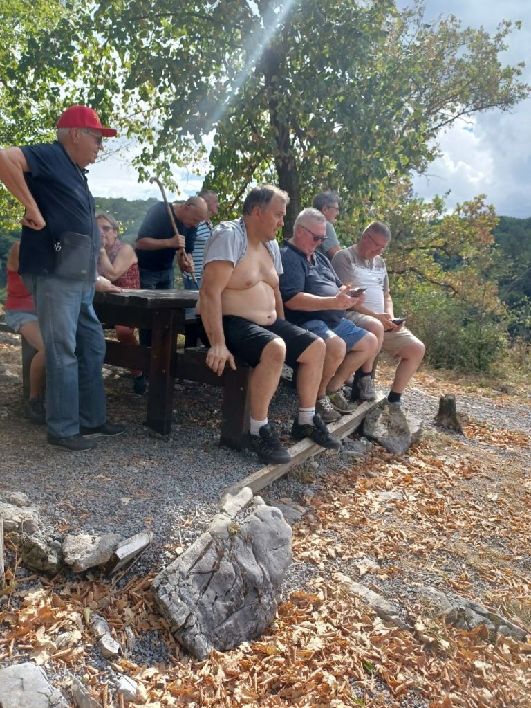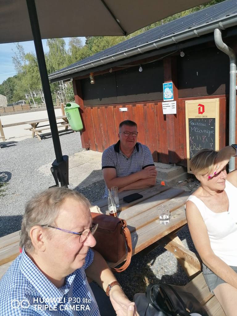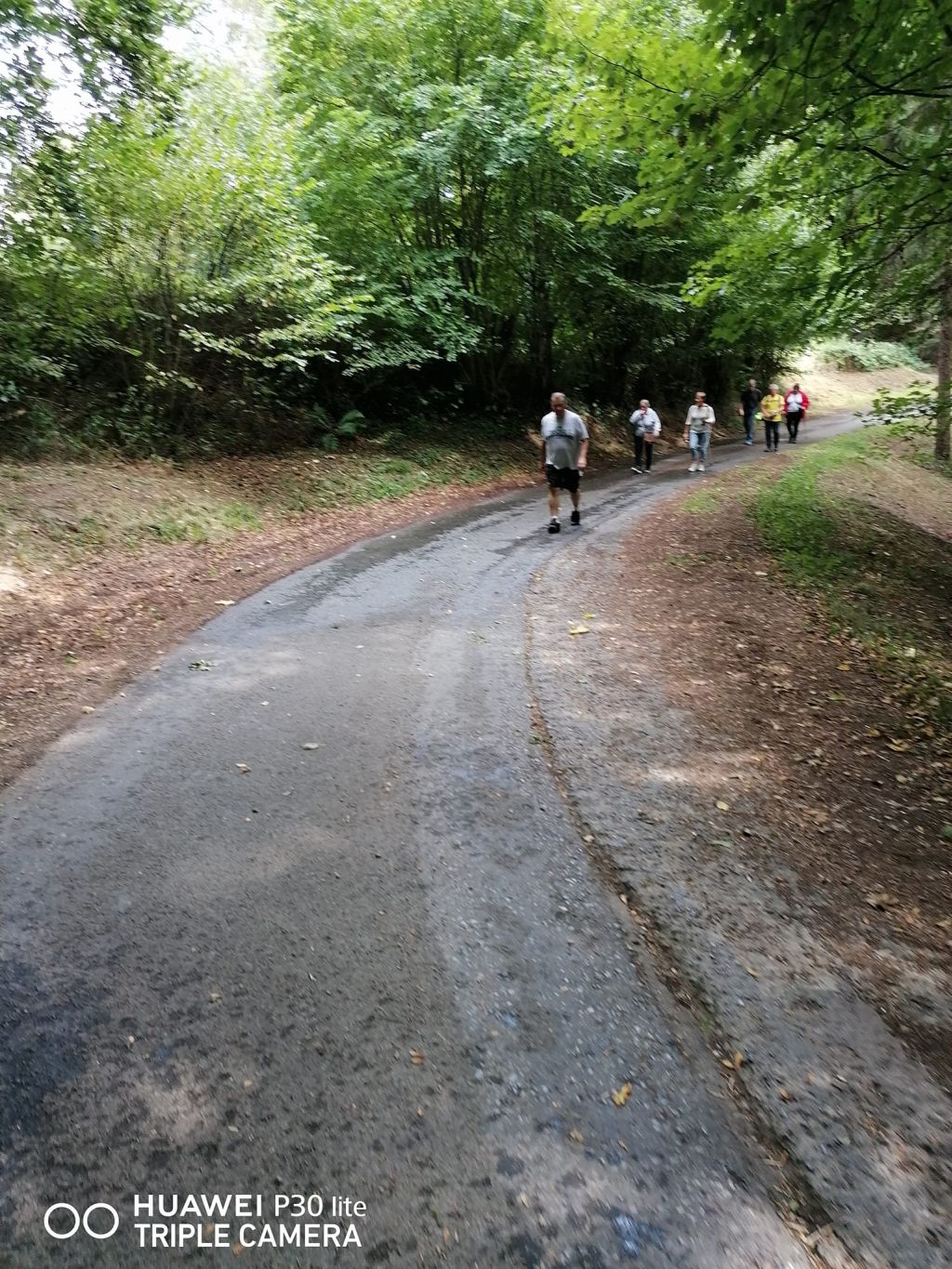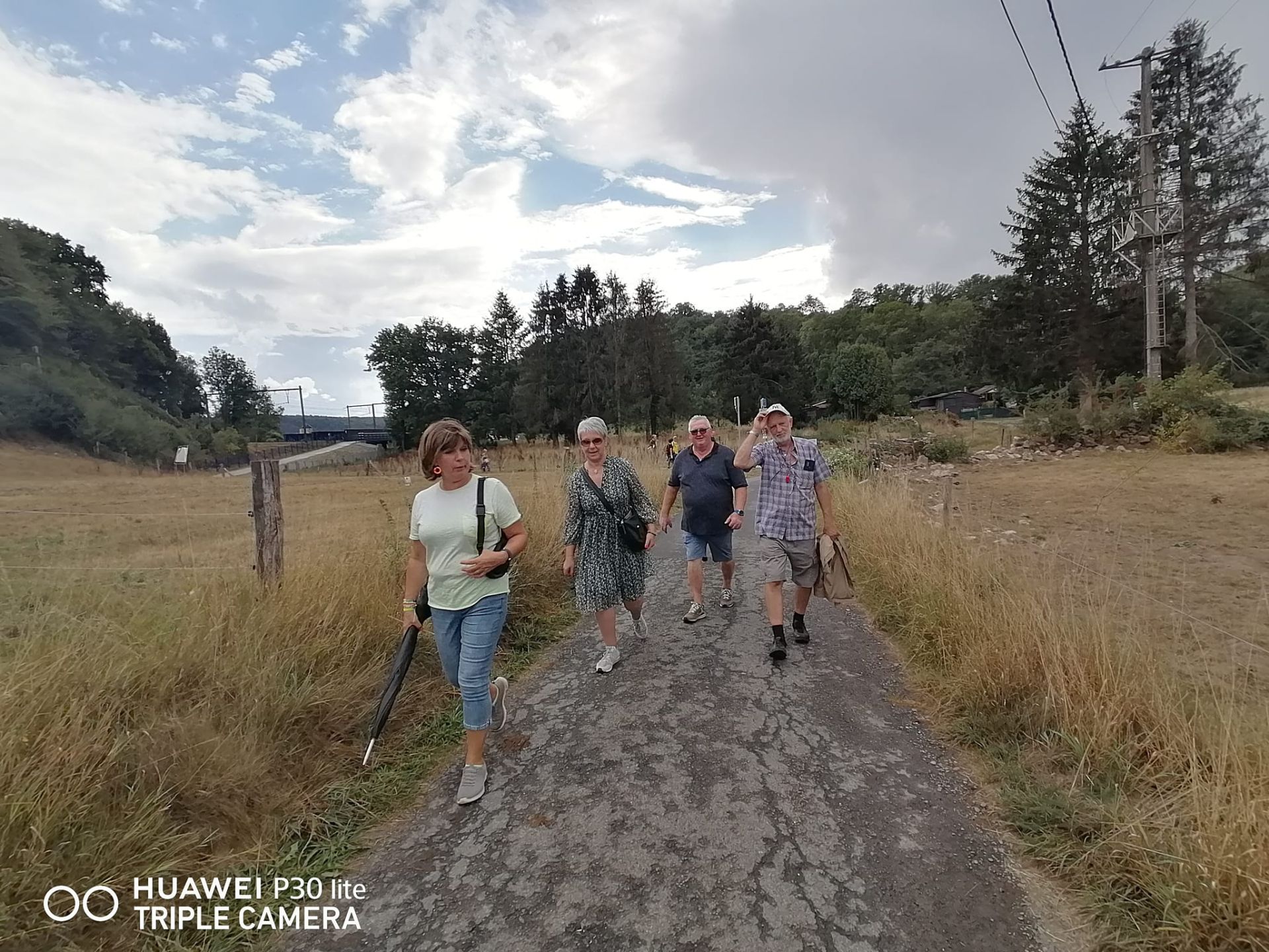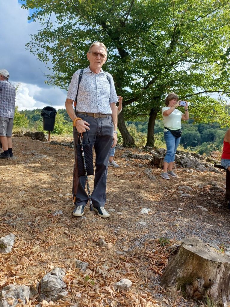 Heureusement, le sol est bien sec et Czesiu nous attend, à mi-hauteur, les bras et le coffre bien ouverts ! J’en profite pour remercier notre ange gardien qui se démène depuis des années pour que nos randonnées soient plus conviviales et plus agréables. Je suppute même que les arrêts de Czesiu attirent plus de monde à nos promenades que les promenades elles-mêmes. Il suffit de voir les sourires radieux qui apparaissent sur les visages des randonneurs dès que la czesiu-mobile se pointe à l’horizon. Merci à toi d’être toujours là où on a besoin de toi.