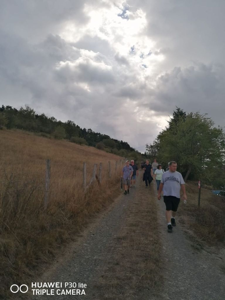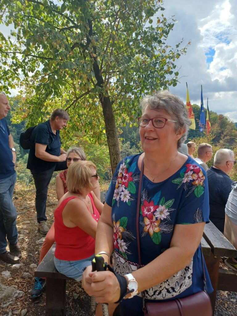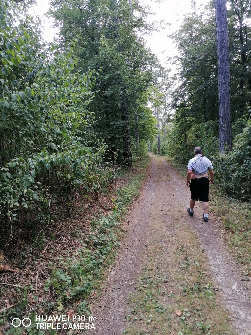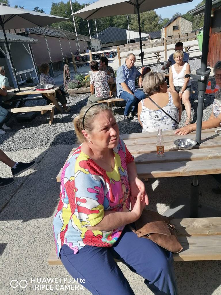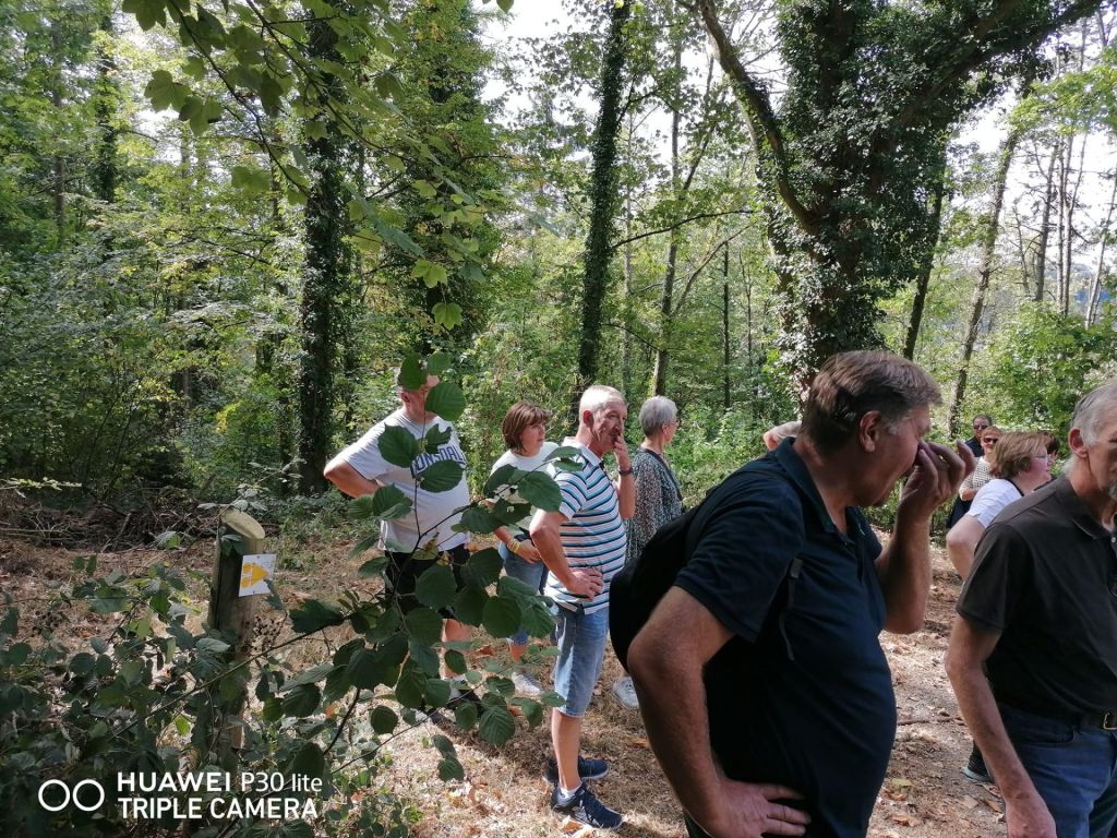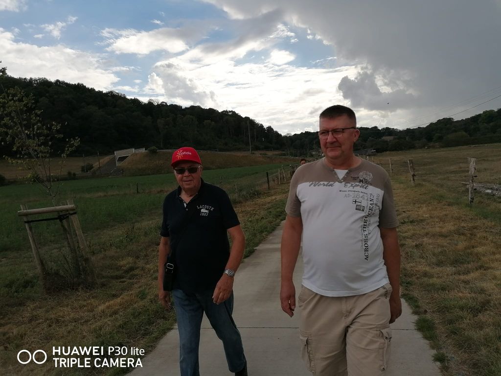 Heureusement, le sol est bien sec et Czesiu nous attend, à mi-hauteur, les bras et le coffre bien ouverts ! J’en profite pour remercier notre ange gardien qui se démène depuis des années pour que nos randonnées soient plus conviviales et plus agréables. Je suppute même que les arrêts de Czesiu attirent plus de monde à nos promenades que les promenades elles-mêmes. Il suffit de voir les sourires radieux qui apparaissent sur les visages des randonneurs dès que la czesiu-mobile se pointe à l’horizon. Merci à toi d’être toujours là où on a besoin de toi.