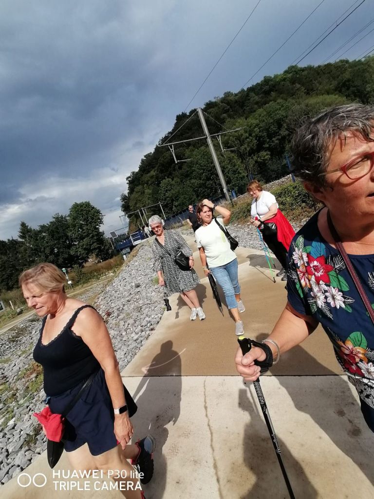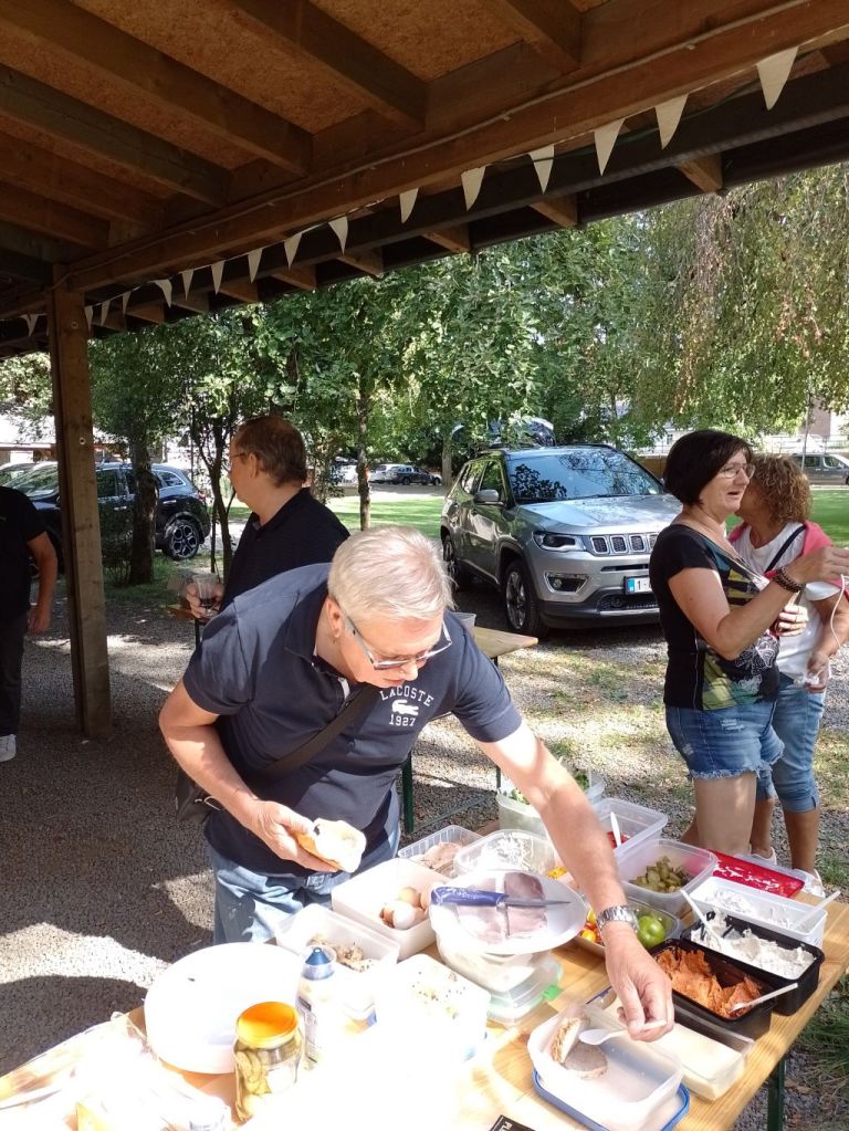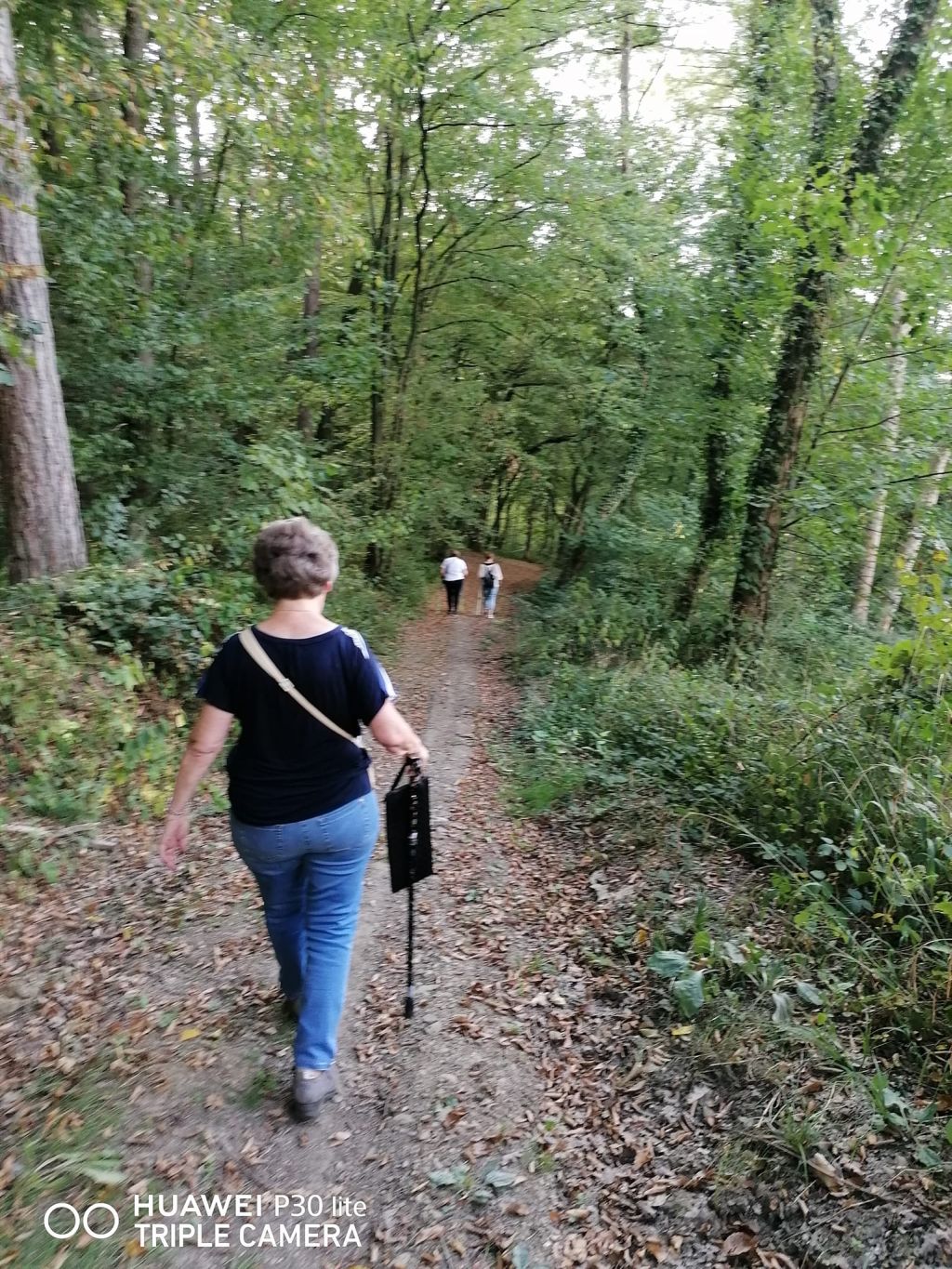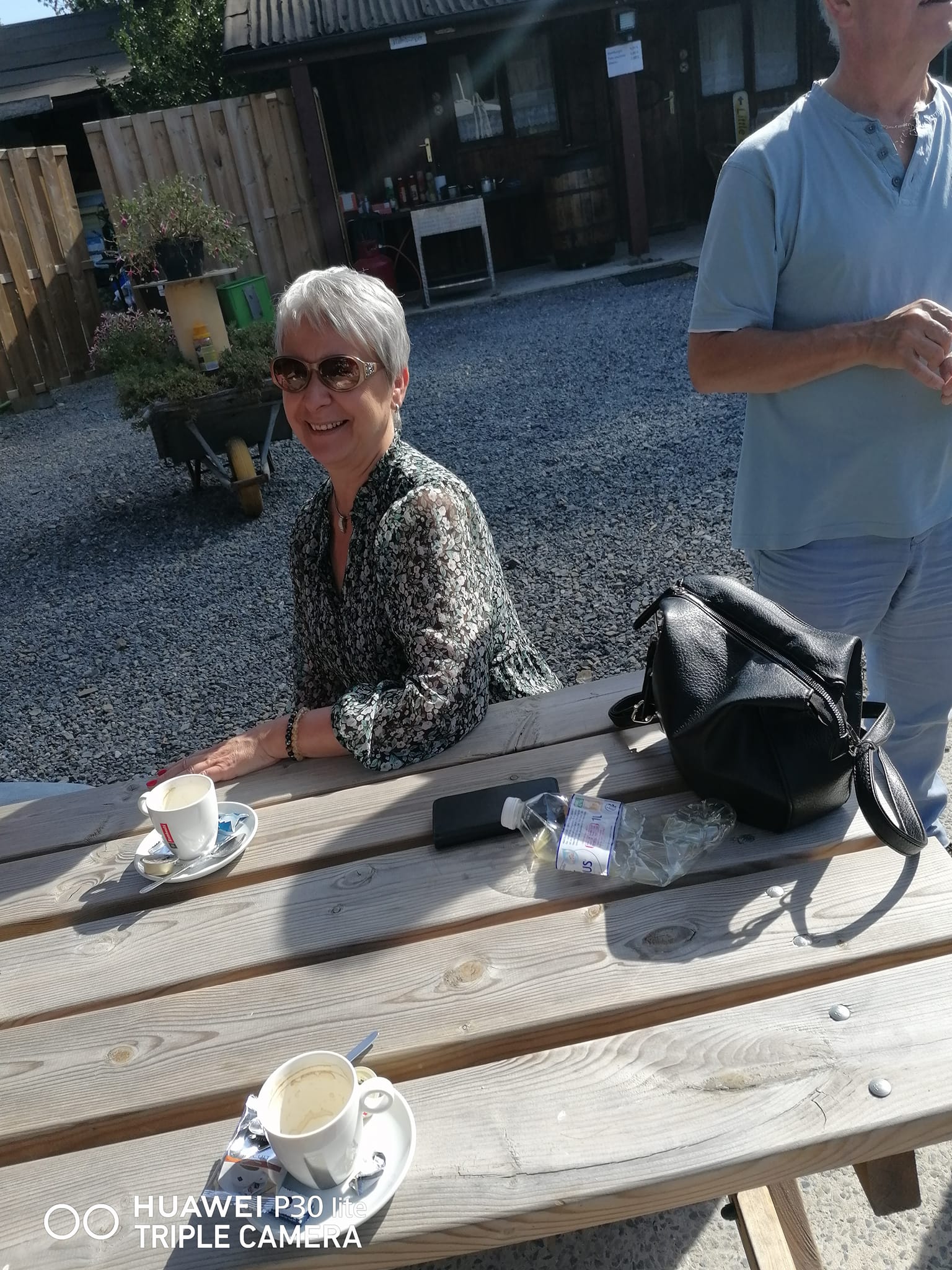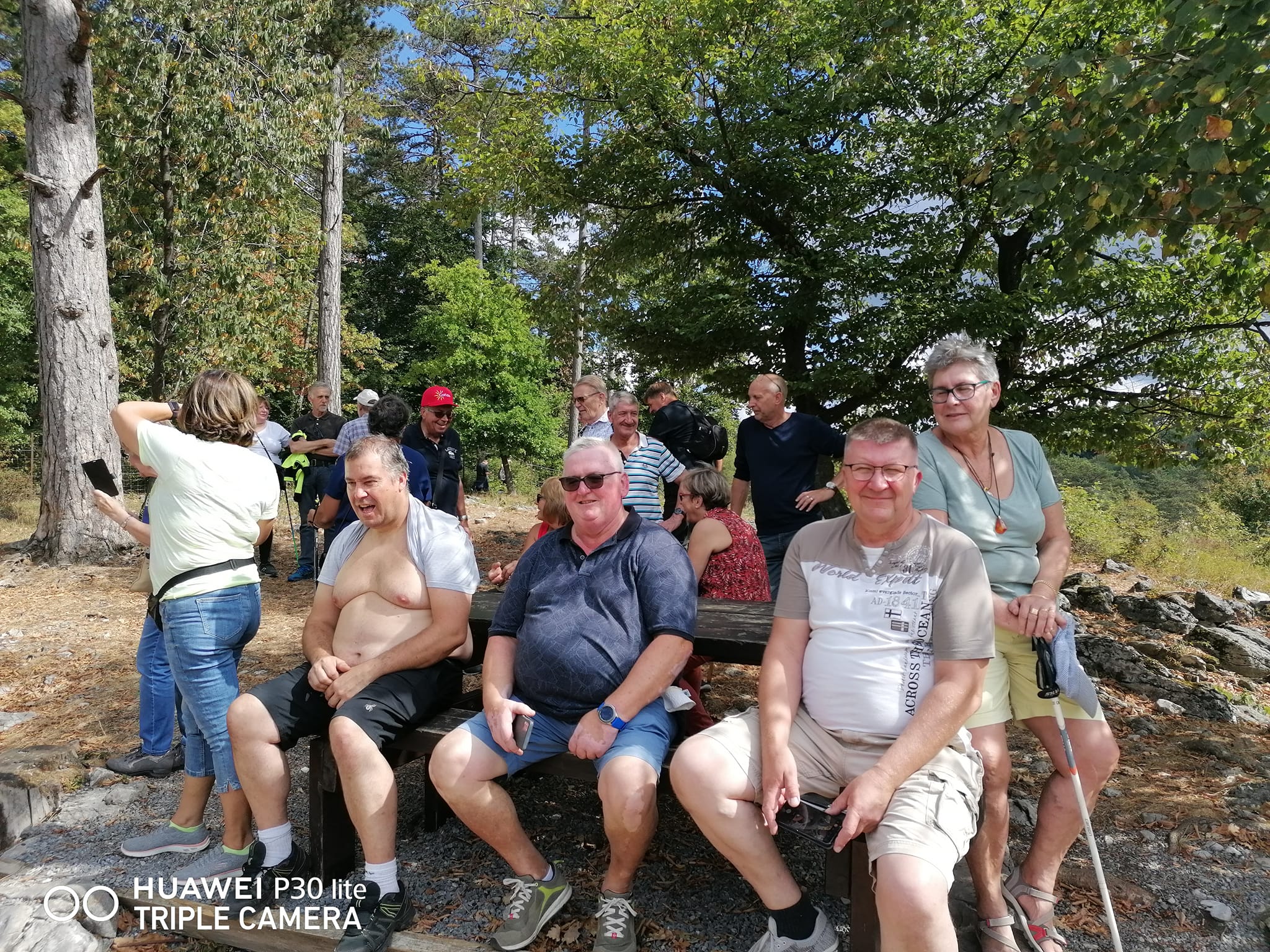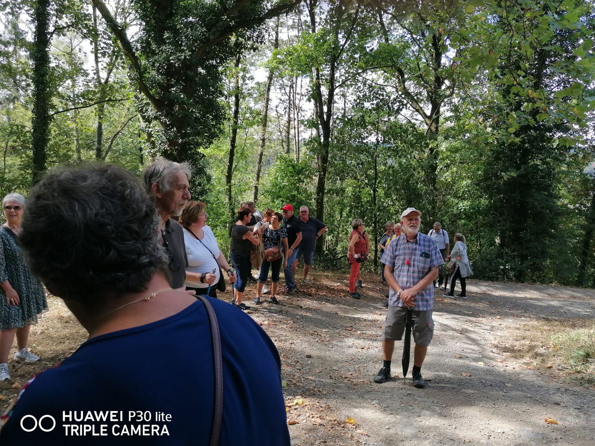 Heureusement, le sol est bien sec et Czesiu nous attend, à mi-hauteur, les bras et le coffre bien ouverts ! J’en profite pour remercier notre ange gardien qui se démène depuis des années pour que nos randonnées soient plus conviviales et plus agréables. Je suppute même que les arrêts de Czesiu attirent plus de monde à nos promenades que les promenades elles-mêmes. Il suffit de voir les sourires radieux qui apparaissent sur les visages des randonneurs dès que la czesiu-mobile se pointe à l’horizon. Merci à toi d’être toujours là où on a besoin de toi.