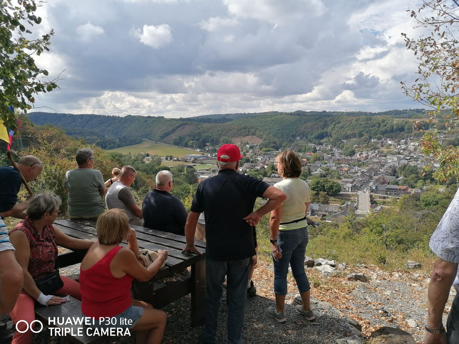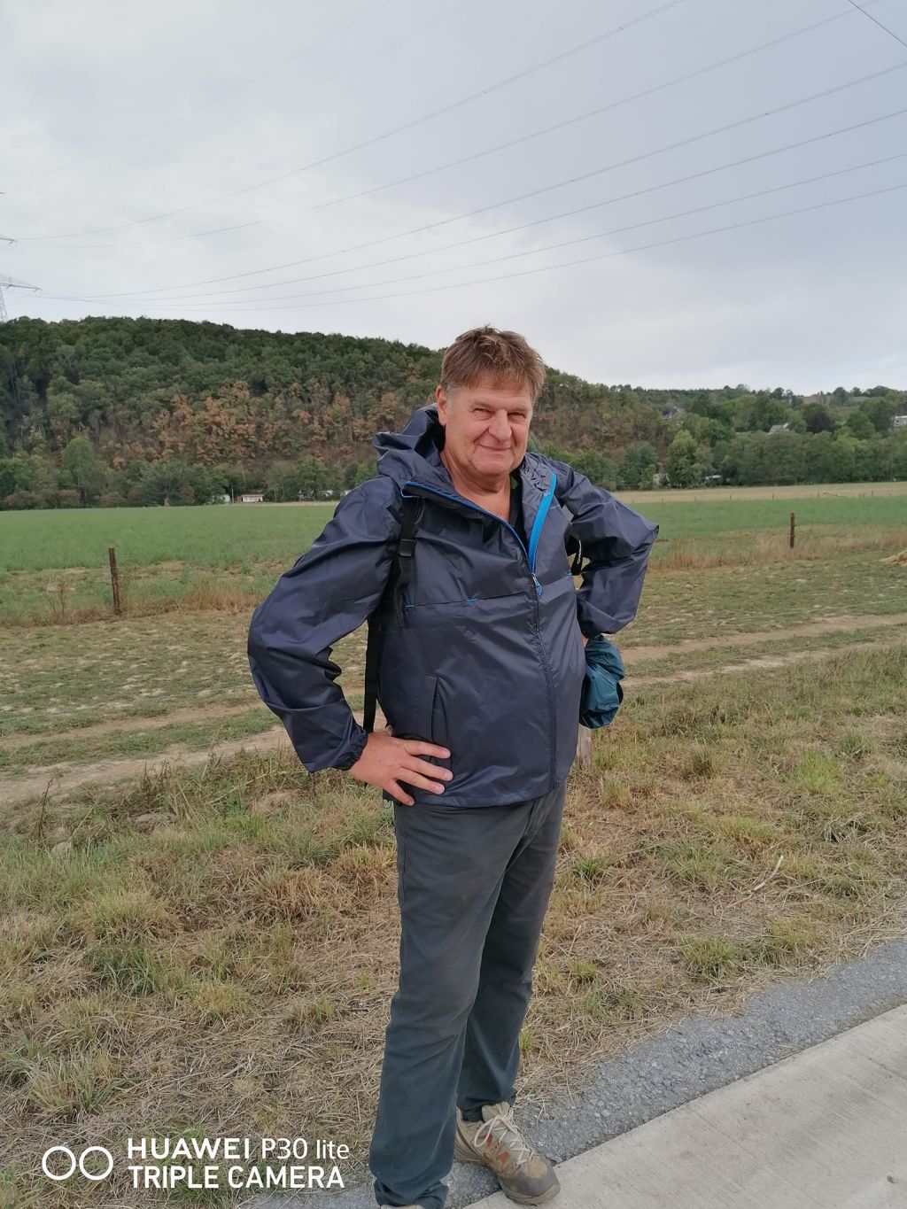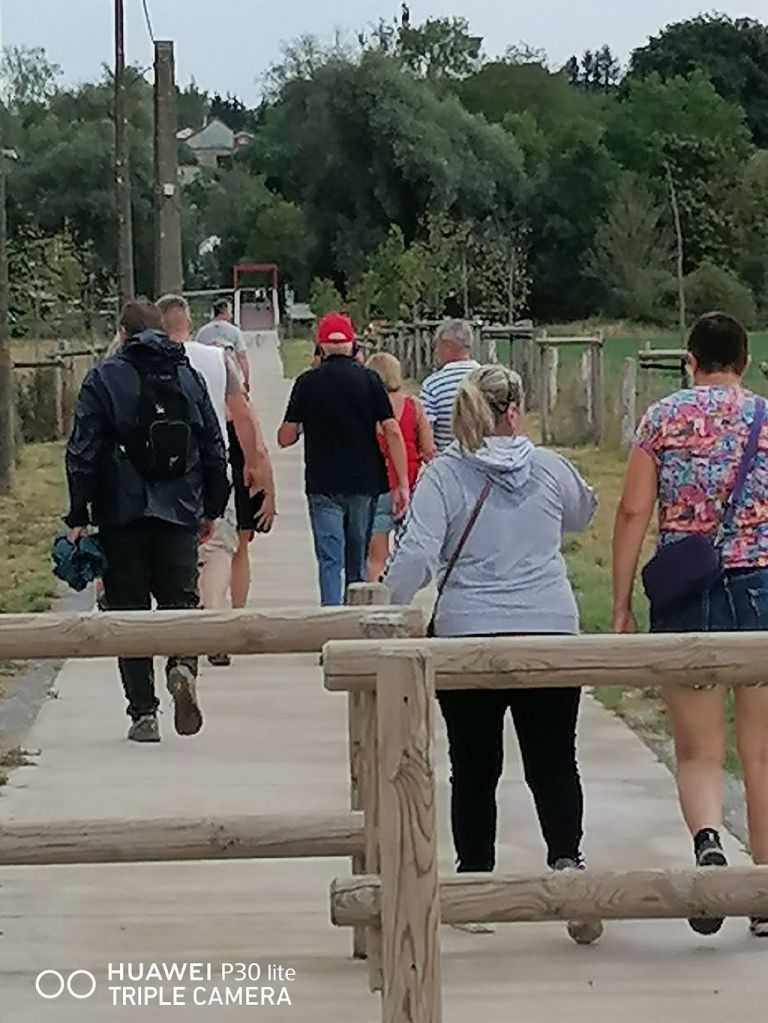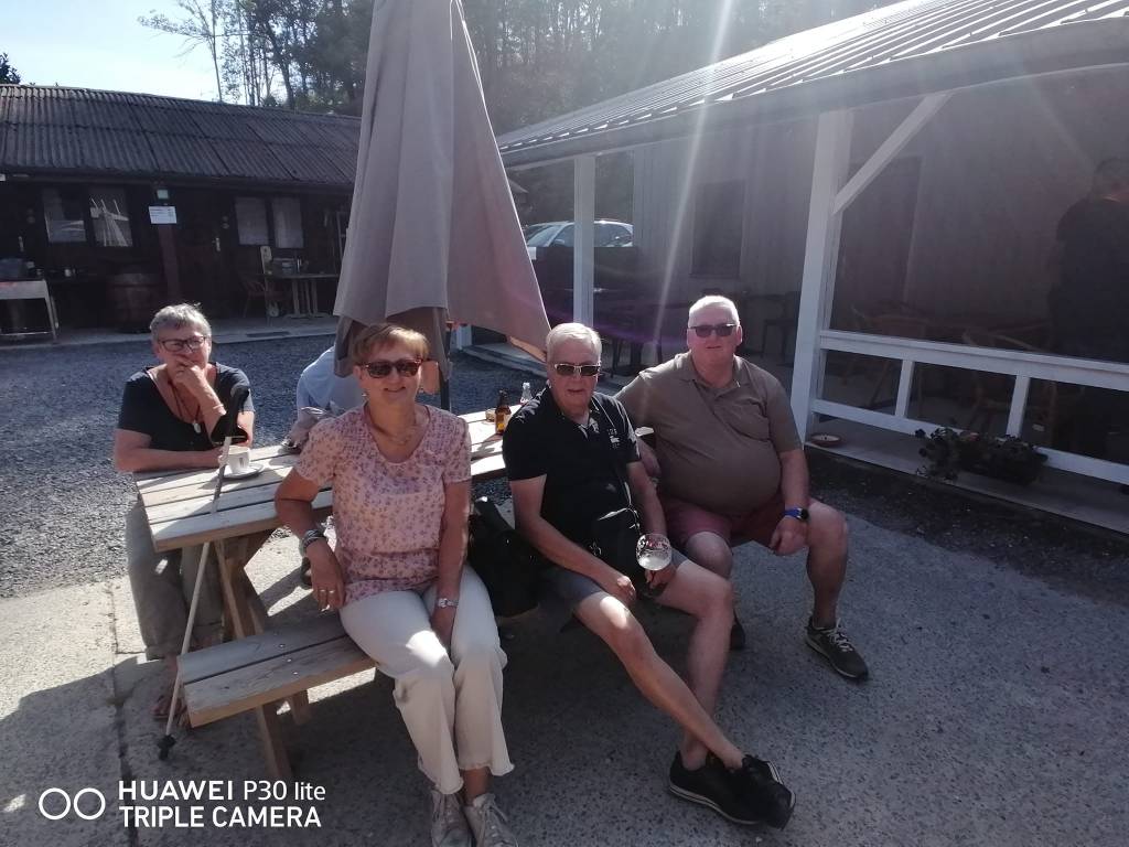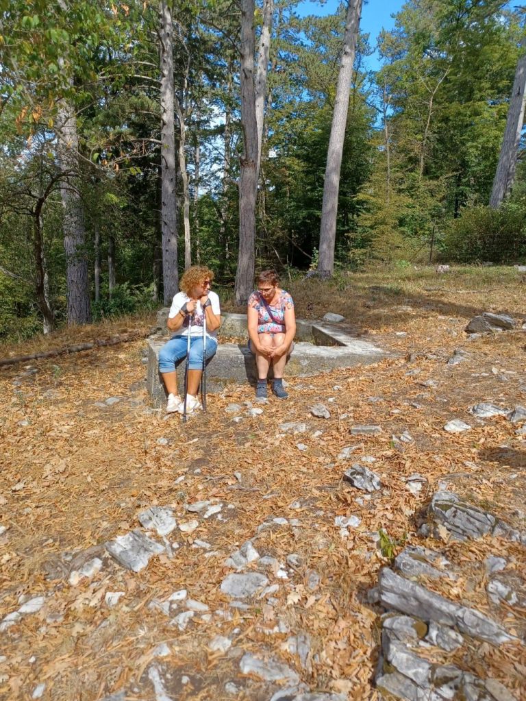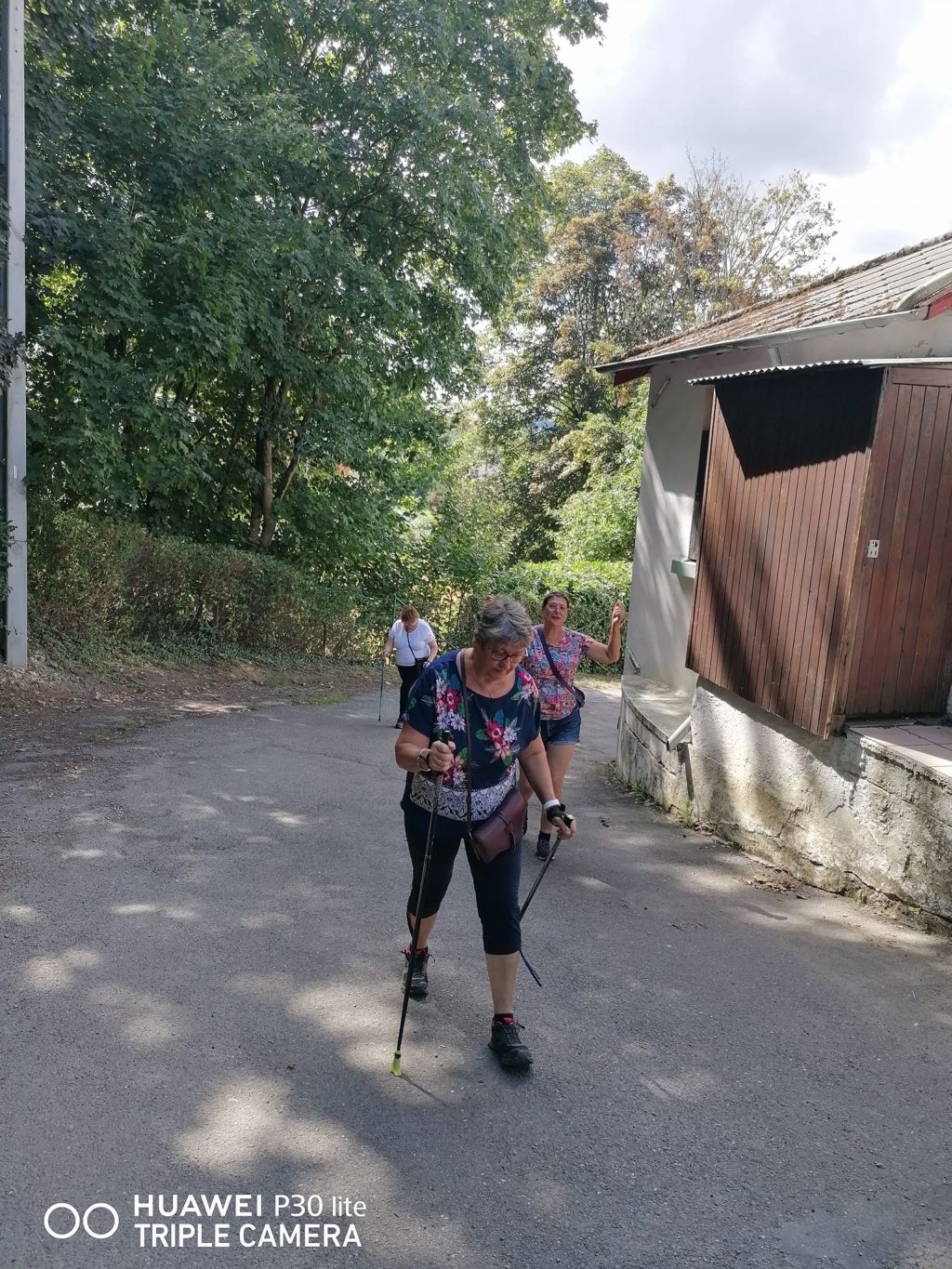 Heureusement, le sol est bien sec et Czesiu nous attend, à mi-hauteur, les bras et le coffre bien ouverts ! J’en profite pour remercier notre ange gardien qui se démène depuis des années pour que nos randonnées soient plus conviviales et plus agréables. Je suppute même que les arrêts de Czesiu attirent plus de monde à nos promenades que les promenades elles-mêmes. Il suffit de voir les sourires radieux qui apparaissent sur les visages des randonneurs dès que la czesiu-mobile se pointe à l’horizon. Merci à toi d’être toujours là où on a besoin de toi.