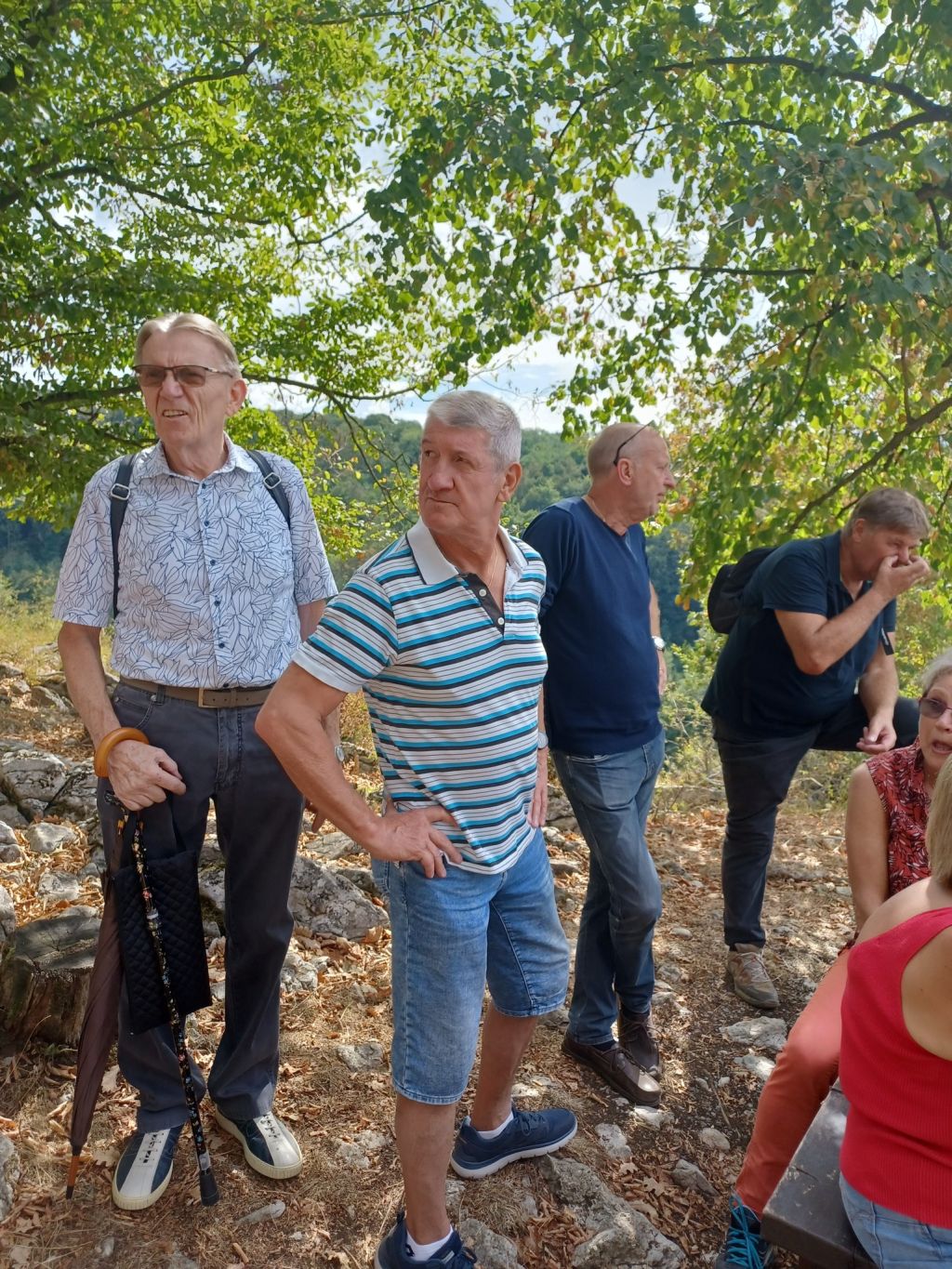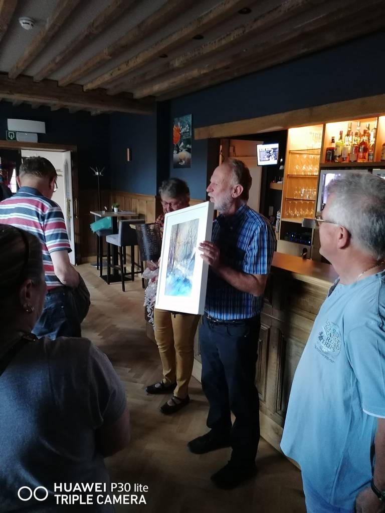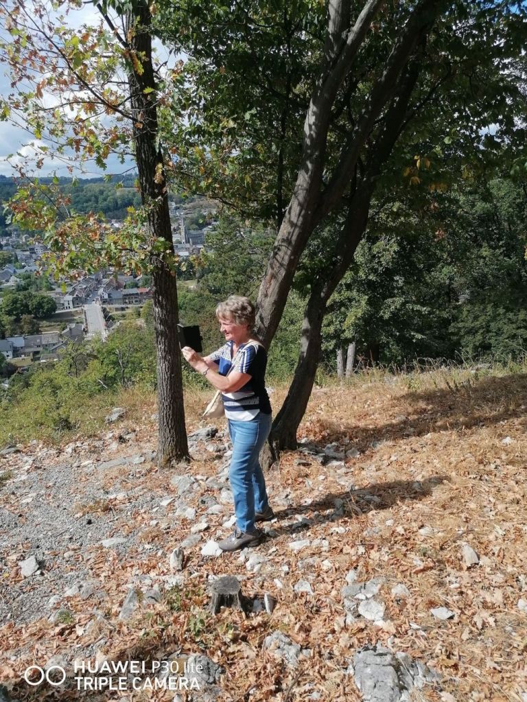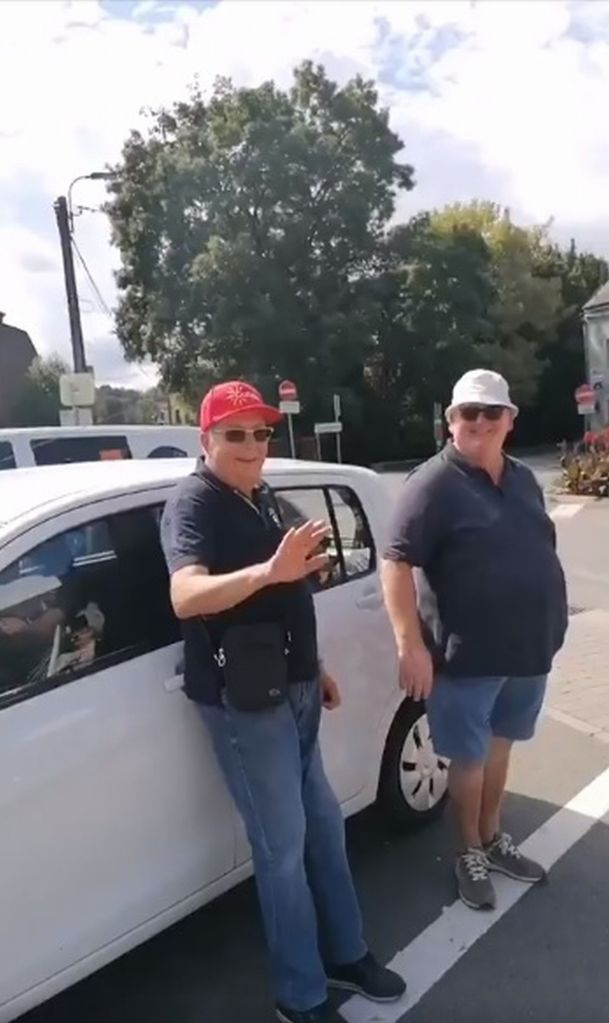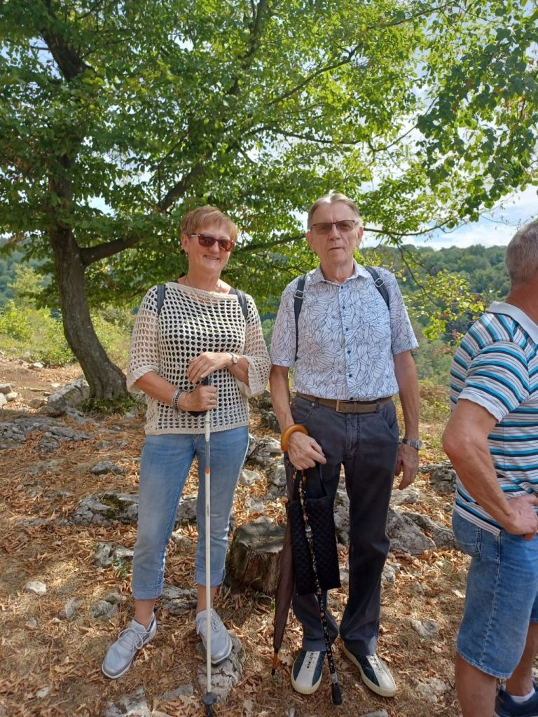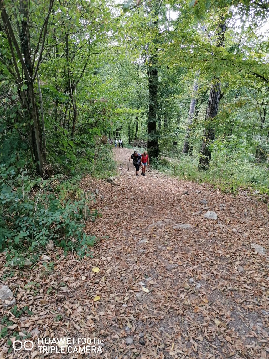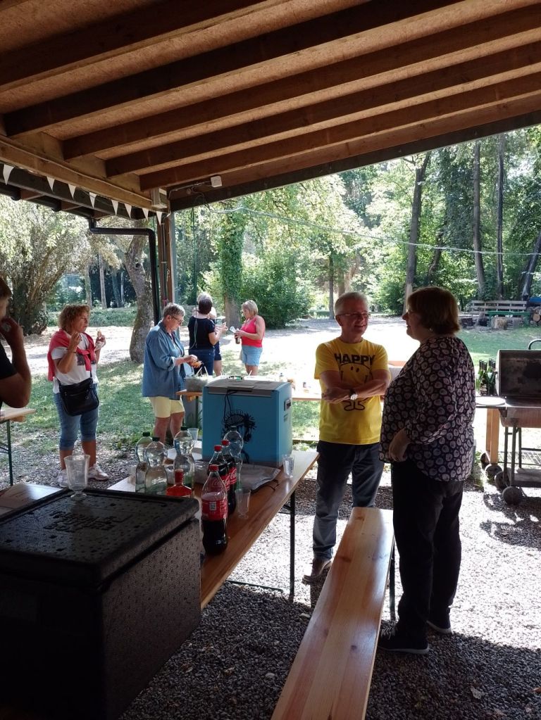 Heureusement, le sol est bien sec et Czesiu nous attend, à mi-hauteur, les bras et le coffre bien ouverts ! J’en profite pour remercier notre ange gardien qui se démène depuis des années pour que nos randonnées soient plus conviviales et plus agréables. Je suppute même que les arrêts de Czesiu attirent plus de monde à nos promenades que les promenades elles-mêmes. Il suffit de voir les sourires radieux qui apparaissent sur les visages des randonneurs dès que la czesiu-mobile se pointe à l’horizon. Merci à toi d’être toujours là où on a besoin de toi.