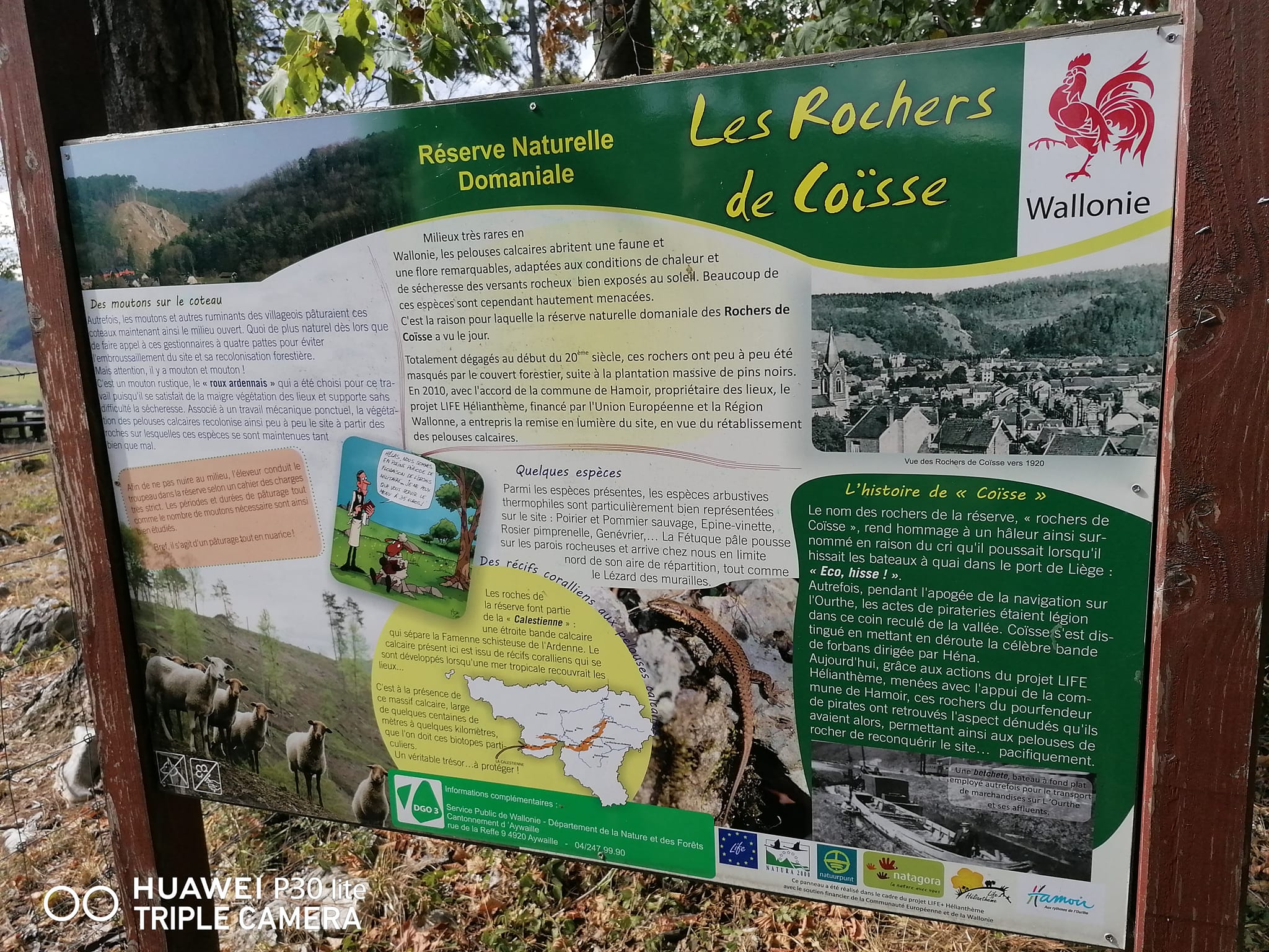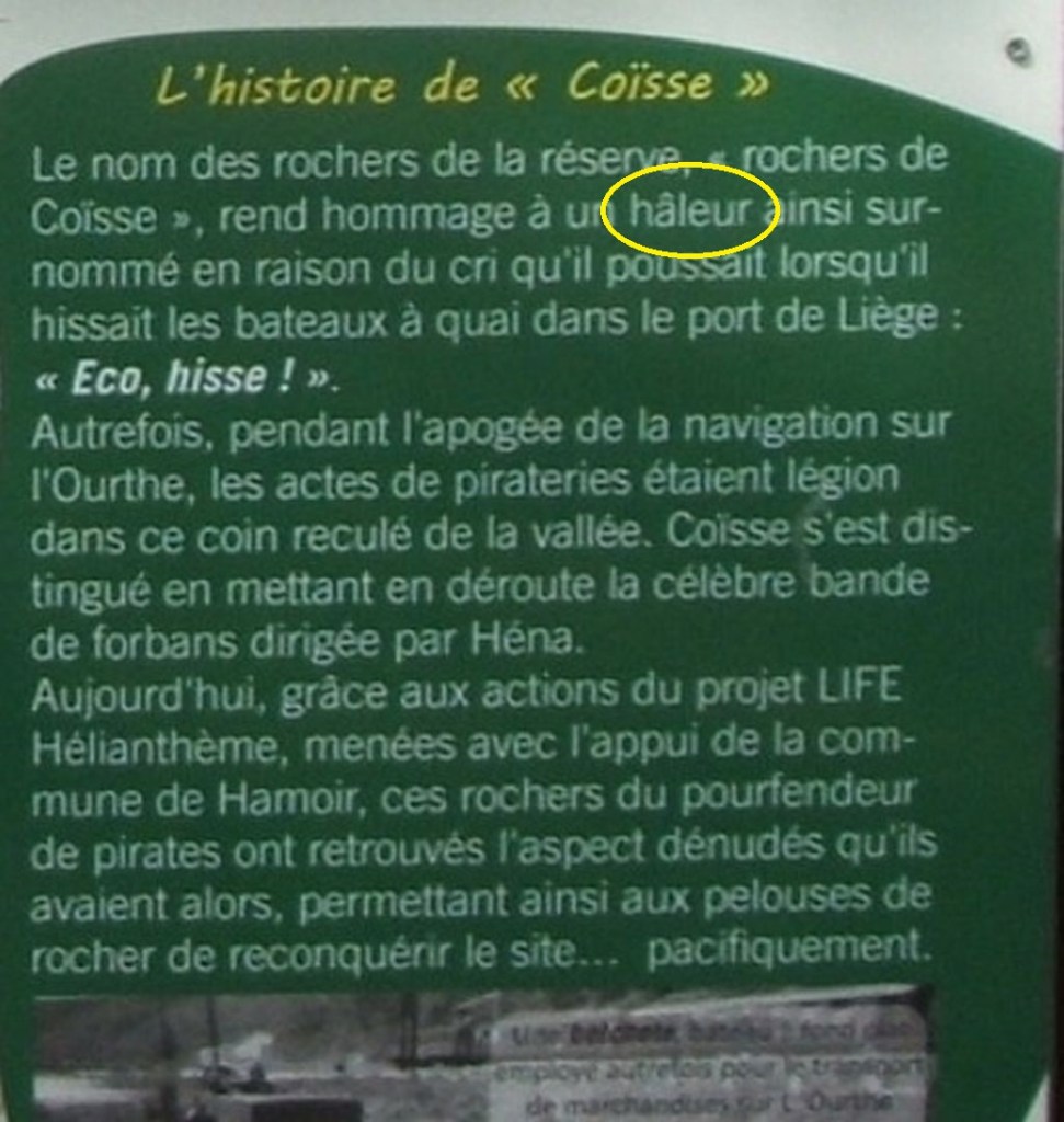 Rappelez-vous, je vous avais dit que le panneau didactique installé, à grands frais, par la Région wallonne tout en haut du Belvédère de Coïsse comportait une faute d’orthographe ( au moins une ).