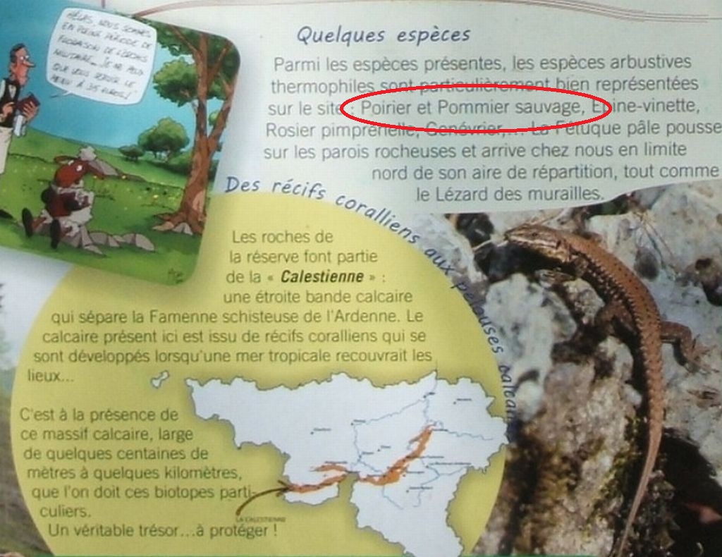 Je dois ajouter qu’Isabella Cosaro a retrouvé une autre faute sur le panneau : « Poirier et Pommier sauvage » mériteraient d’avoir un « s » à sauvage !