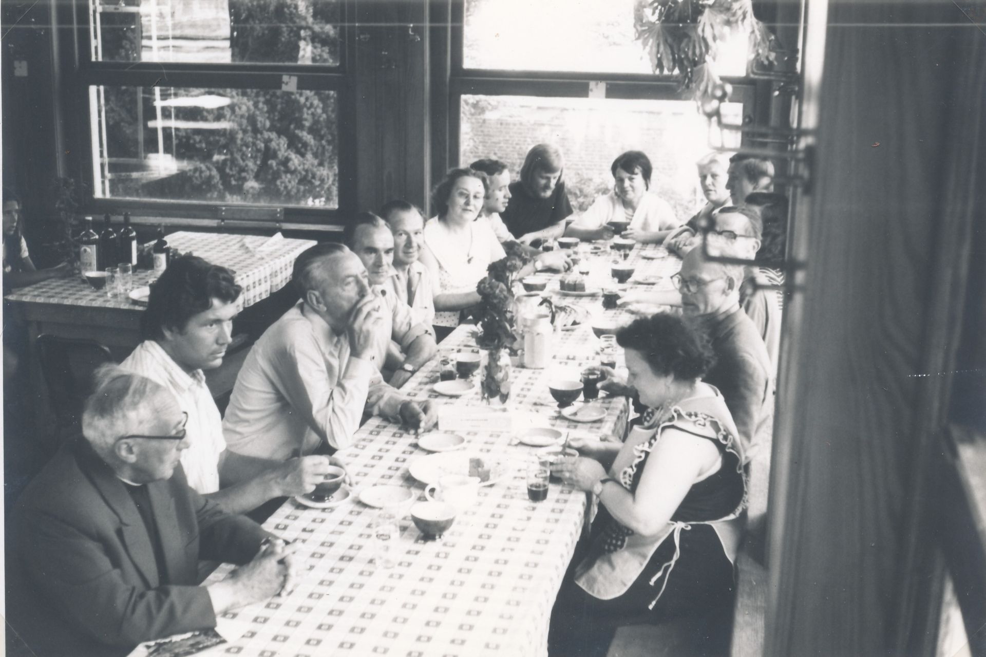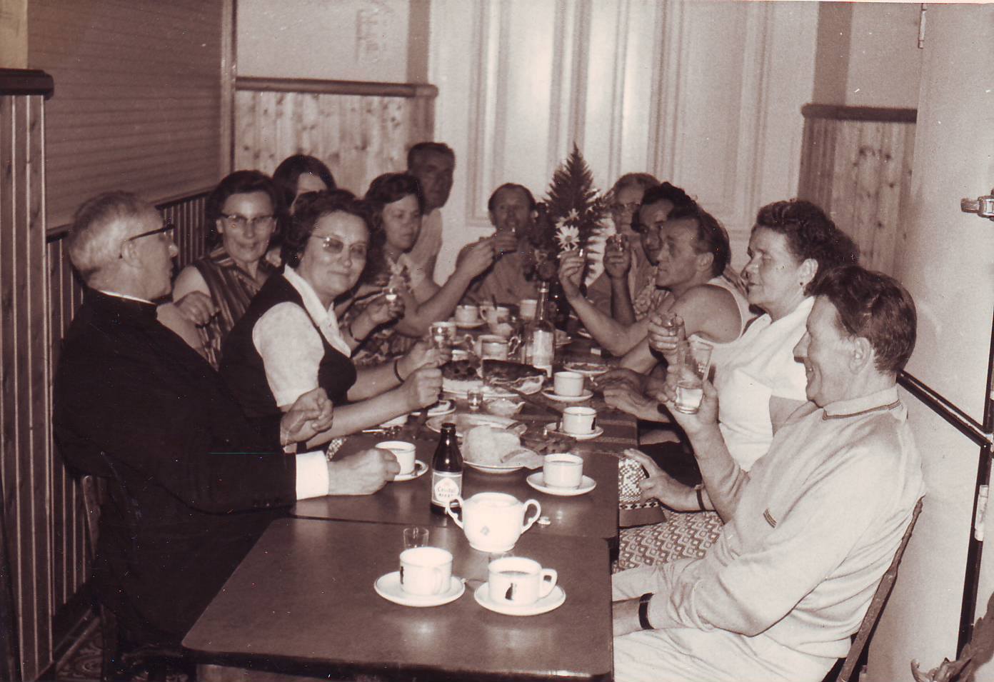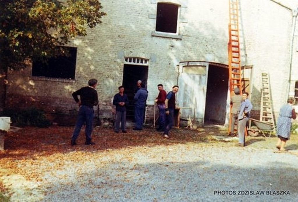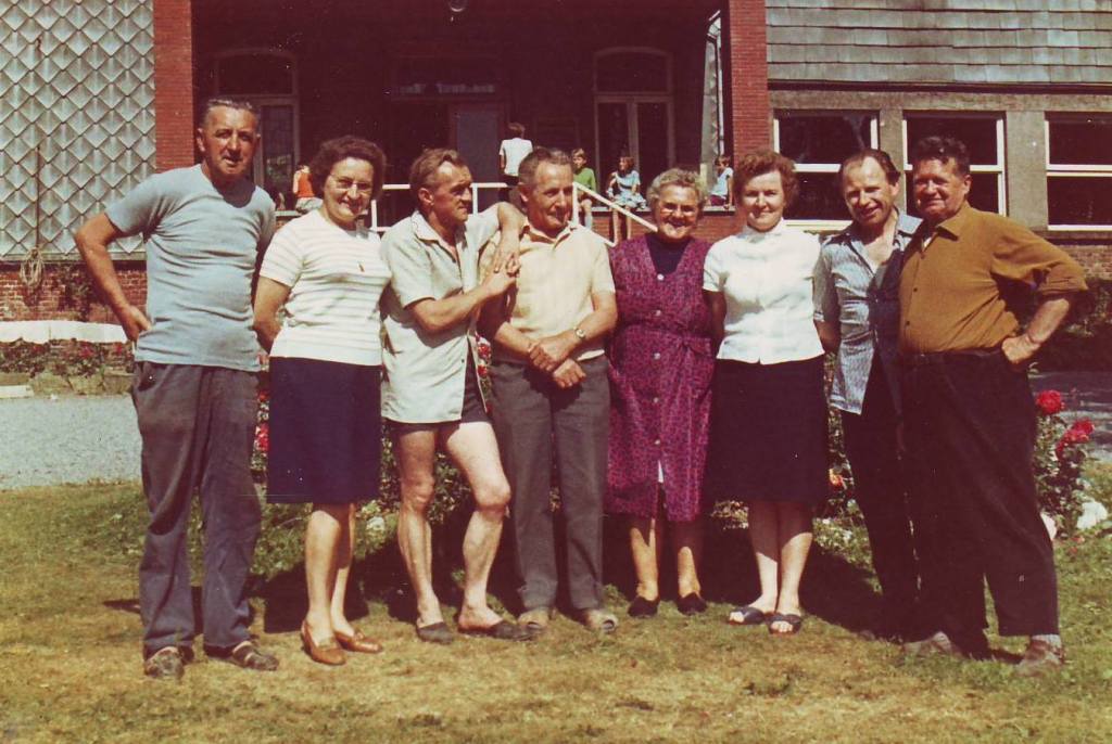 3.563 : COMBLAIN-LA-TOUR : Sur l’escalier du perron : Mr Mirosław Wochen et Marianna, son épouse ; Pani Merta et son mari Wacek ; Mr Pomorski ; Mr Jan Stefanski et son épouse ; Mme Nioucka Bień ; Aline Bień ; Mr Dulak ; Pan Bardo ; Mme Marianna Koldziejka ; Mr Marysia et Bolek Chwoszcz ; Mirka Chwoszcz ; … ; Mr Kiełtyka et Mme Kiełtyka ; André Paterka ; Danielle Paterka ; Mr Kaziu Rogacki ; Mme Irène Drabina et son mari ; Mr Tadek Plichta ; Mr Angowski ; ( ? ).